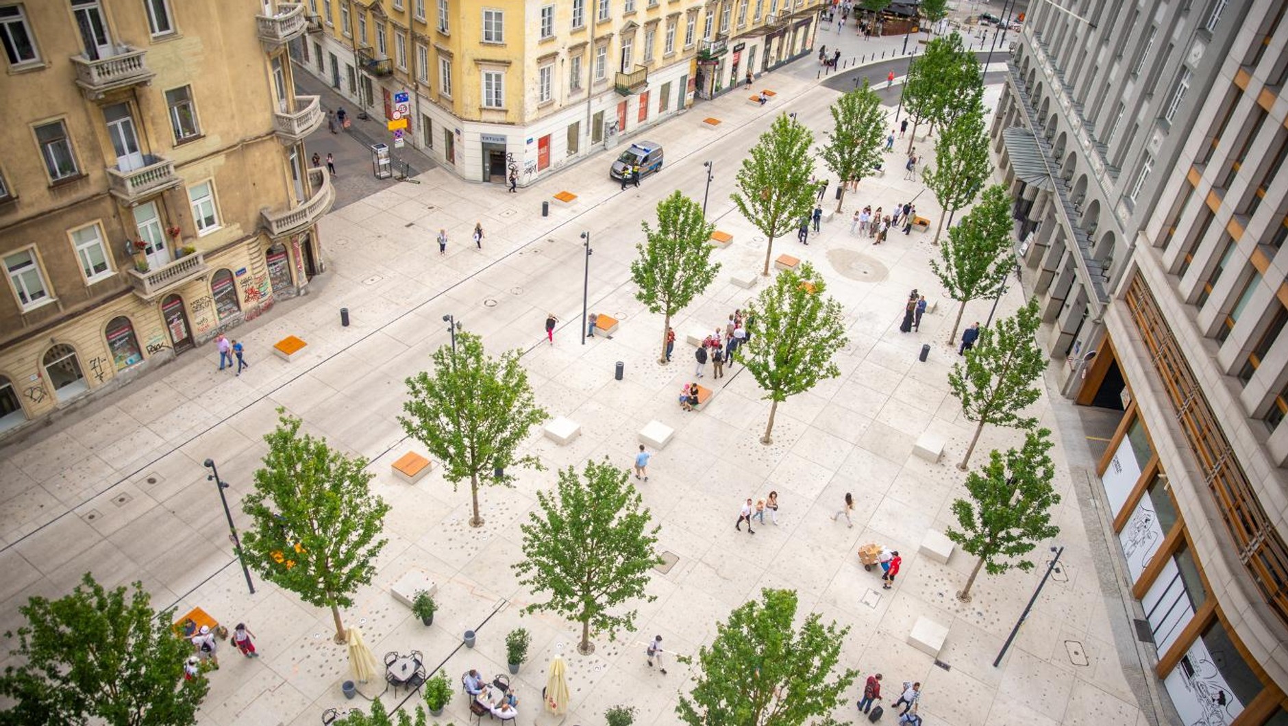 Plac Pięciu Rogów otwarto 5 lipca. Od tego czasu miejsce stało się przestrzenią niedostępną dla samochodów, mogą tędy jeździć jedynie autobusy komunikacji miejskiej. Wyjątkiem są auta ze specjalnymi identyfikatorami NC, które wydaje Zarząd Dróg Miejskich.
