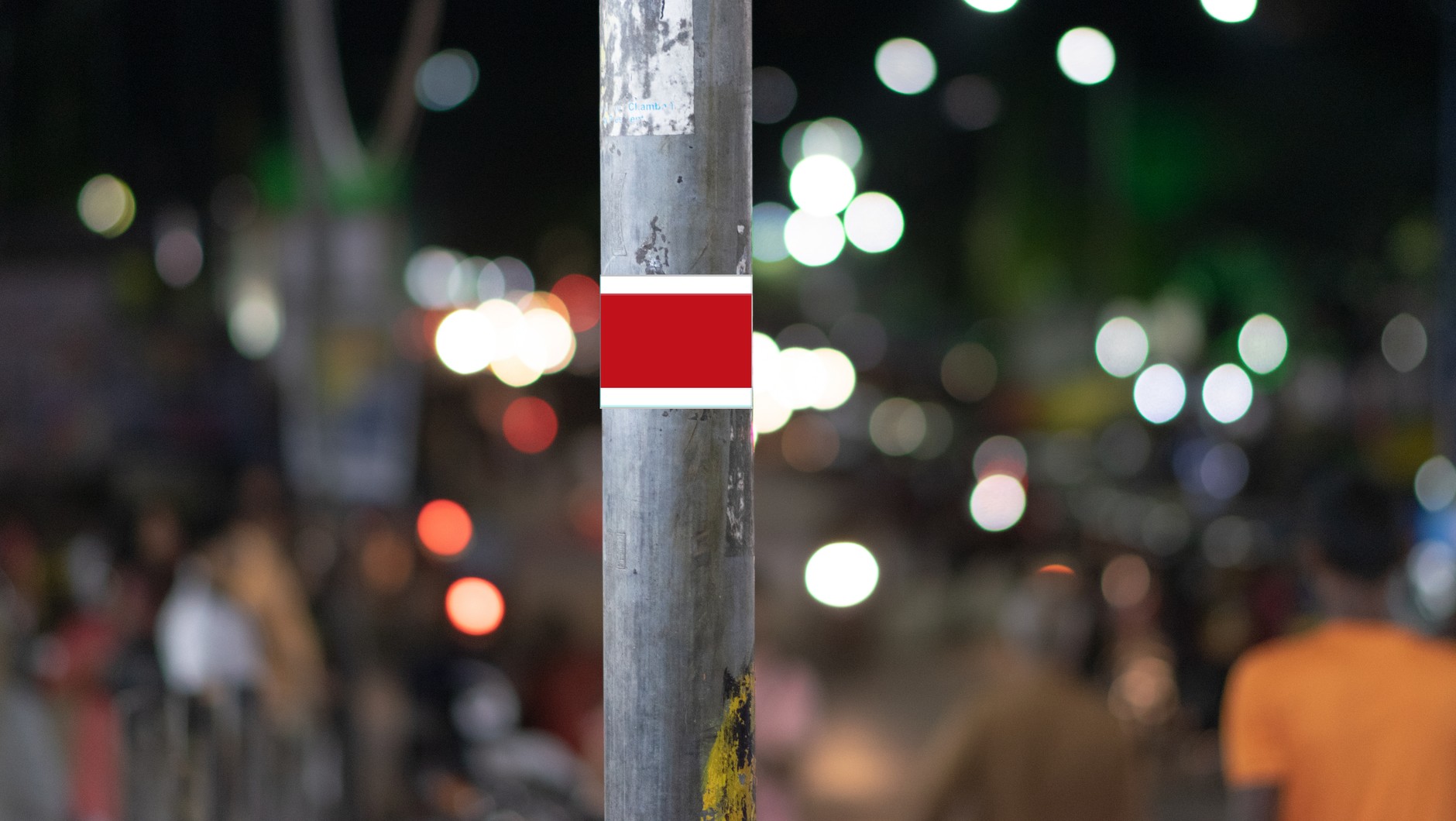 - Pasek jest malowany na latarniach ulicznych na wysokości ok. 1,5-1,8 metra