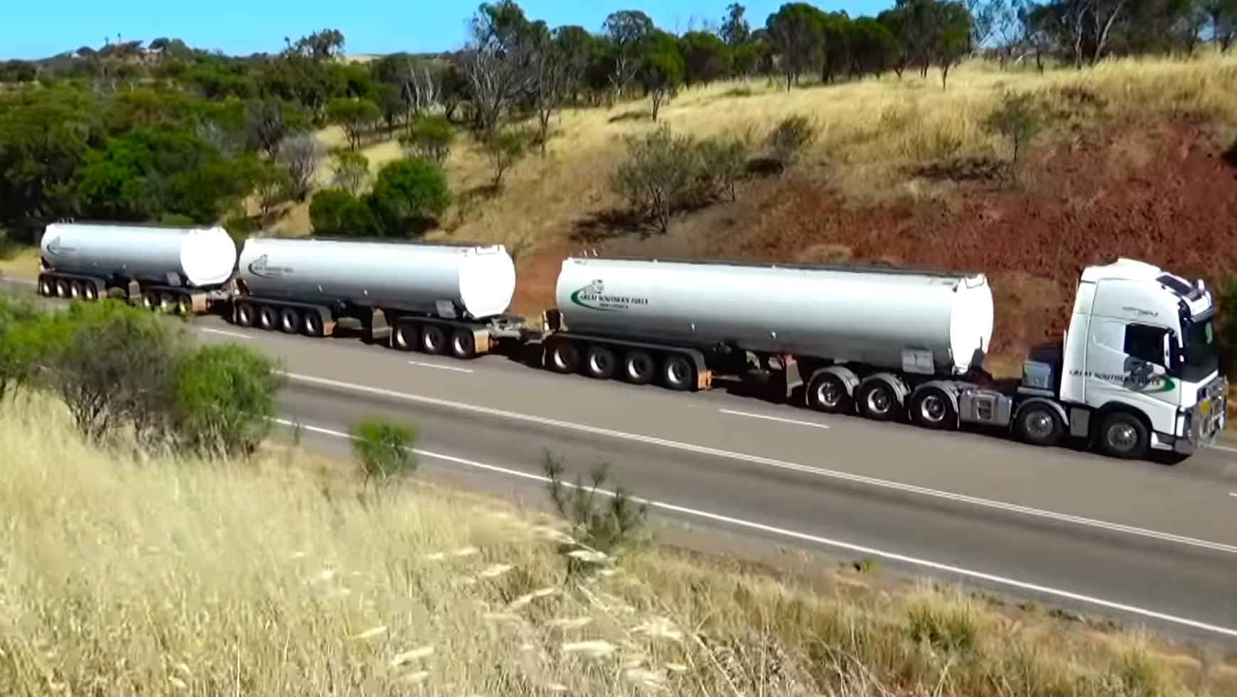 Na początek musimy wyraźnie zaznaczyć, że taki czteroczłonowy zestaw może robić wrażenie na nas, Europejczykach, jednak w Australii to nie jest nic aż tak wyjątkowego. Zdarzają się bowiem pociągi drogowe złożone ze znacznie większej liczby przyczep - według niektórych źródeł najdłuższy zestaw (zapisany w Księdze Guinessa!) podpięty do pojedynczego ciągnika siodłowego miał 113 członów, liczył sobie skromne 1473 metry (!) i ważył 1300 t. Oczywiście takie zestawy w regularnej służbie raczej się nie pojawiają, jednak dane liczbowe i tak robią wrażenie.