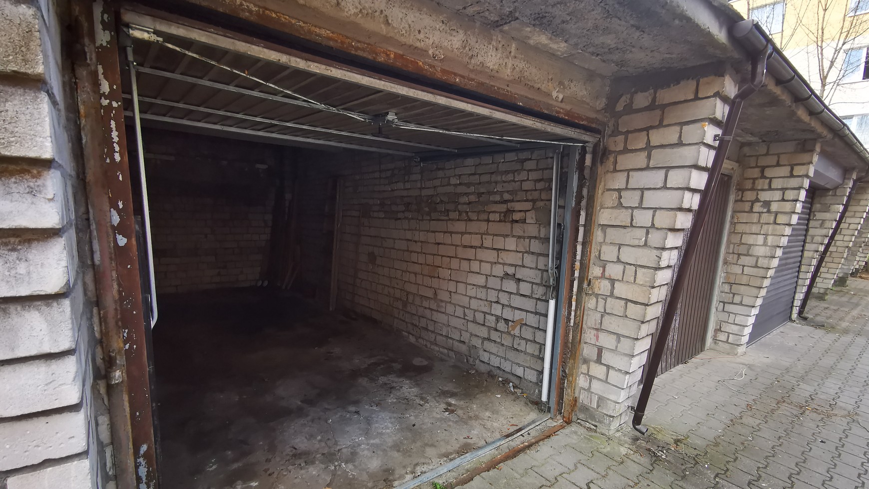 Z dalszych minusów: nie ma tu prądu, a więc i oświetlenia brak, ale podobno można by podciągnąć elektryczność, sąsiedzi przecież mają. Nie ma też kanału (w niektórych starych garażach budowano kanały pozwalające na samodzielne naprawy). Garaż jest na tyle mały, że trudno nawet myśleć o otynkowaniu ścian czy położeniu na nich jakichś paneli ozdobnych – w tych warunkach każdy centymetr przestrzeni mniej robi różnicę.