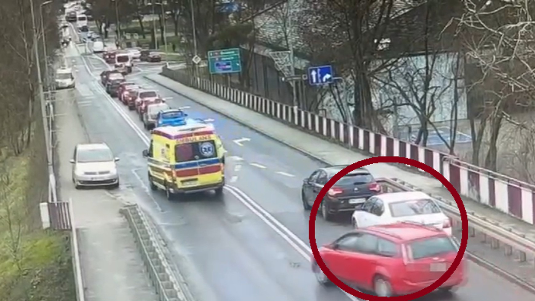 Nagle za karetką pojawił się samochód. Tak kierowca wykorzystał korytarz życia
