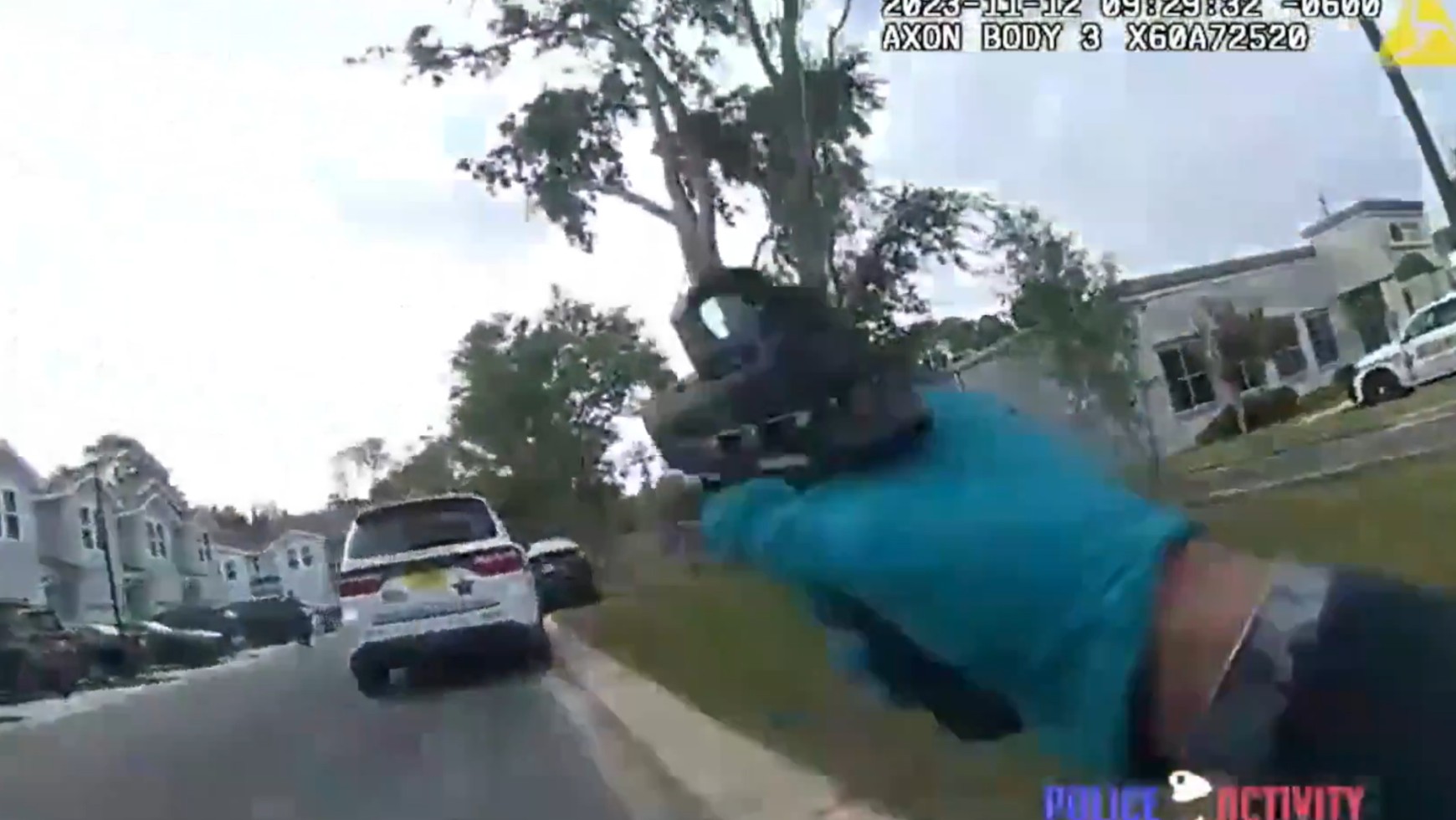 Jak widać na nagraniu, kilkakrotnie krzyknął "strzały", upadł na ziemię, przetoczył się i zaczął strzelać do radiowozu. Towarzysząca mu sierż. Beth Roberts powiedziała, że była świadkiem zdarzenia. Jak twierdzi, sama też oddała kilka strzałów.