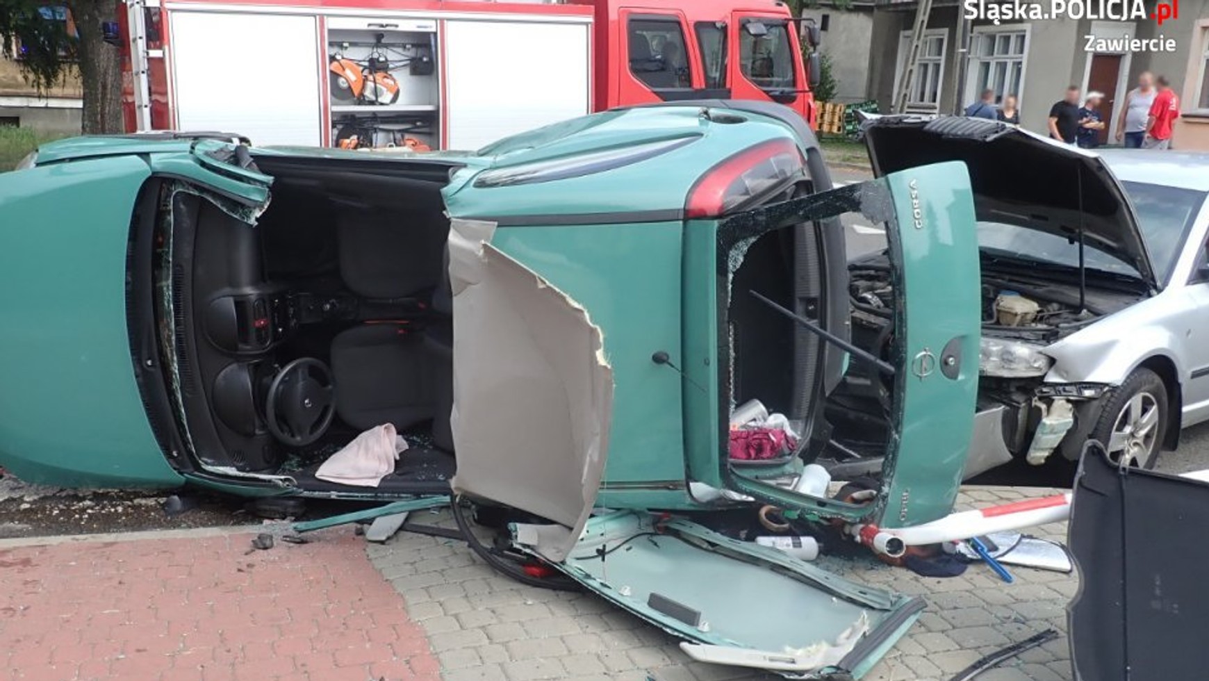 Do zderzenia pojazdów doszło 24 sierpnia br. około godz. 10.30 na skrzyżowaniu ul. Daszyńskiego z ul. Skłodowskiej-Curie w Zawierciu. Kierowca srebrnej Skody Superb z kierownicą po prawej stronie wymusił pierwszeństwo przejazdu kobiecie prowadzącej Opla. Ranna 24-latka trafiła do szpitala, na szczęście nie doznała poważnych obrażeń.