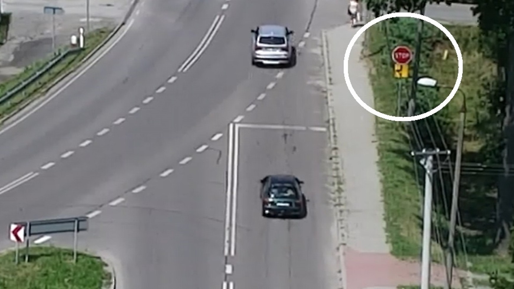 Dalszy ciąg artykułu pod materiałem wideoNa miejsce kontroli wybrano rejon skrzyżowania w miejscowości Stróża koło Kraśnika, gdzie znajduje się znak STOP (B-20). Obiektyw kamery drona rejestrował zachowanie uczestników ruchu, a w momencie, gdy operator zauważył wykroczenie, natychmiast ta informacja trafiała do policjantów, którzy kilkaset metrów dalej zatrzymywali kierującego.