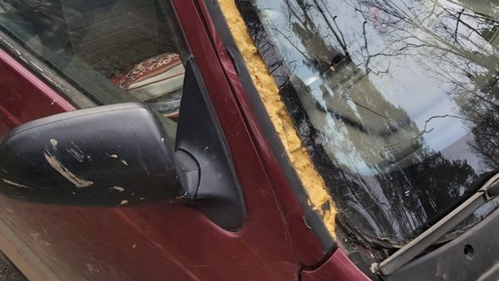 Szyba zamontowana przy użyciu pianki budowlanejPolicja Złotoryjska