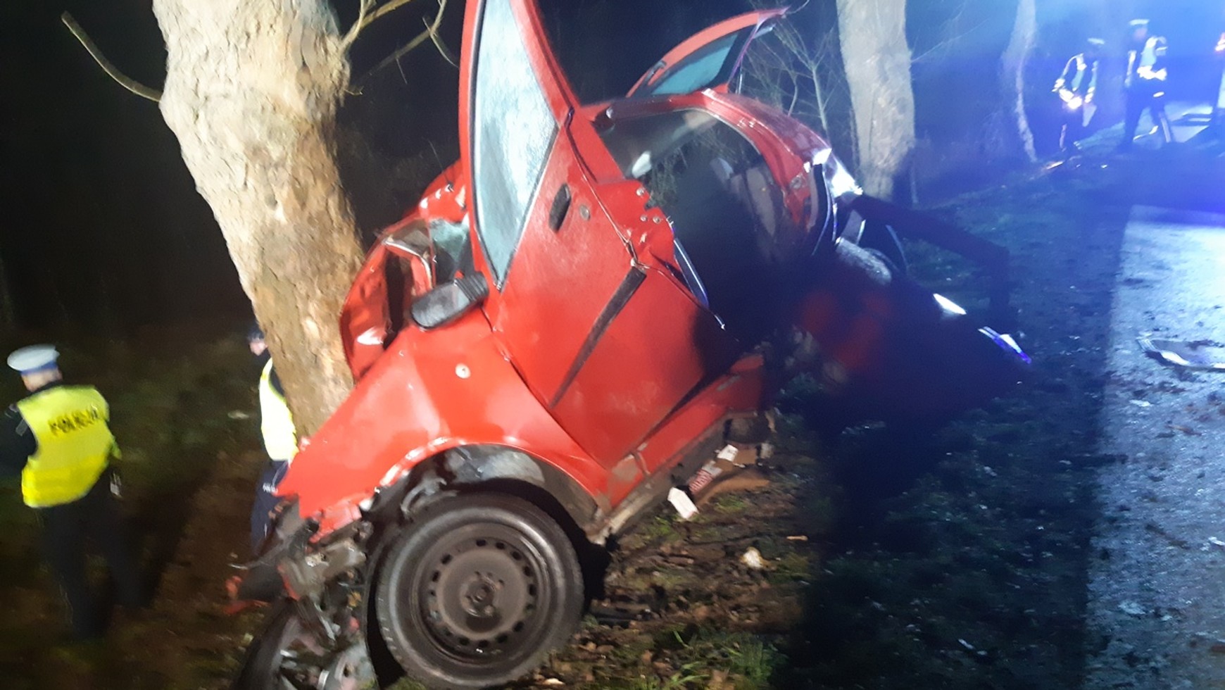Ze wstępnych ustaleń wynika, że na łuku mokrej drogi kierowca Fiata Punto stracił nad nim panowanie i zjechał na lewą jej stronę. Następnie wpadł na pobocze i uderzył w drzewo.