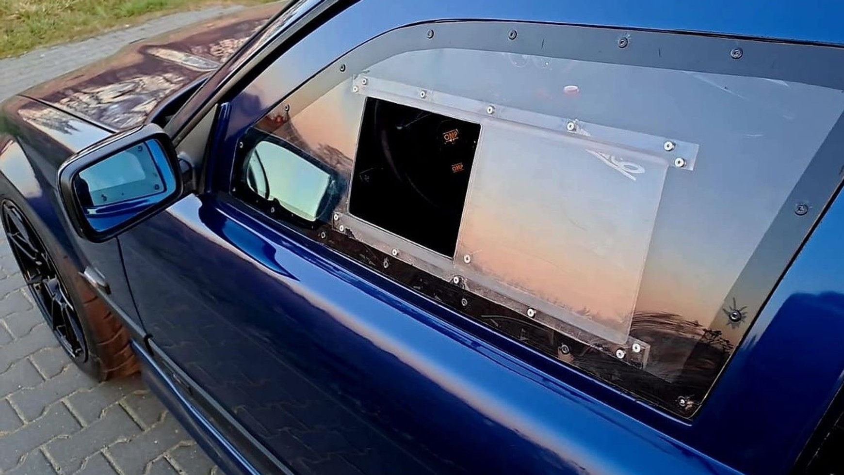 Policjanci stwierdzili, że auto miało niesprawny hamulec postojowy, nie posiadało sygnału dźwiękowego, a w przedniej bocznej szybie wykonanej z pleksi posiadało otwór wentylacyjny. Właściciel najwyraźniej postanowił zrobić z BMW auto rajdowe. NA drugi zdjęciu widoczne są kubełkowe fotele, pasy szelkowe i klatka bezpieczeństwa.