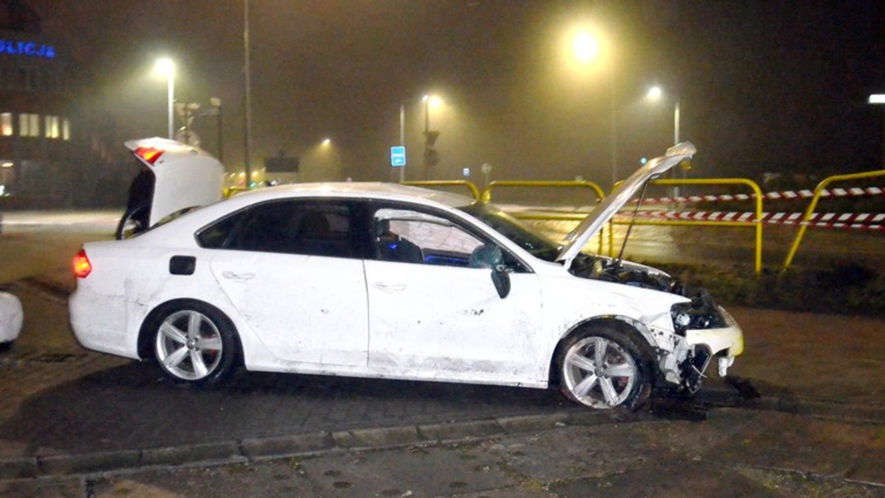 Policjant dyżurujący przy telefonie alarmowym usłyszał głośny huk, pochodzący z pobliskiego ronda. Natychmiast skierował na miejsce patrol drogówki. Funkcjonariusze, którzy bardzo szybko dotarli na miejsce, zastali rozbitego Volkswagena oraz mężczyznę, którym nim kierował. Na szczęście, kierowca nie odniósł poważnych obrażeń.