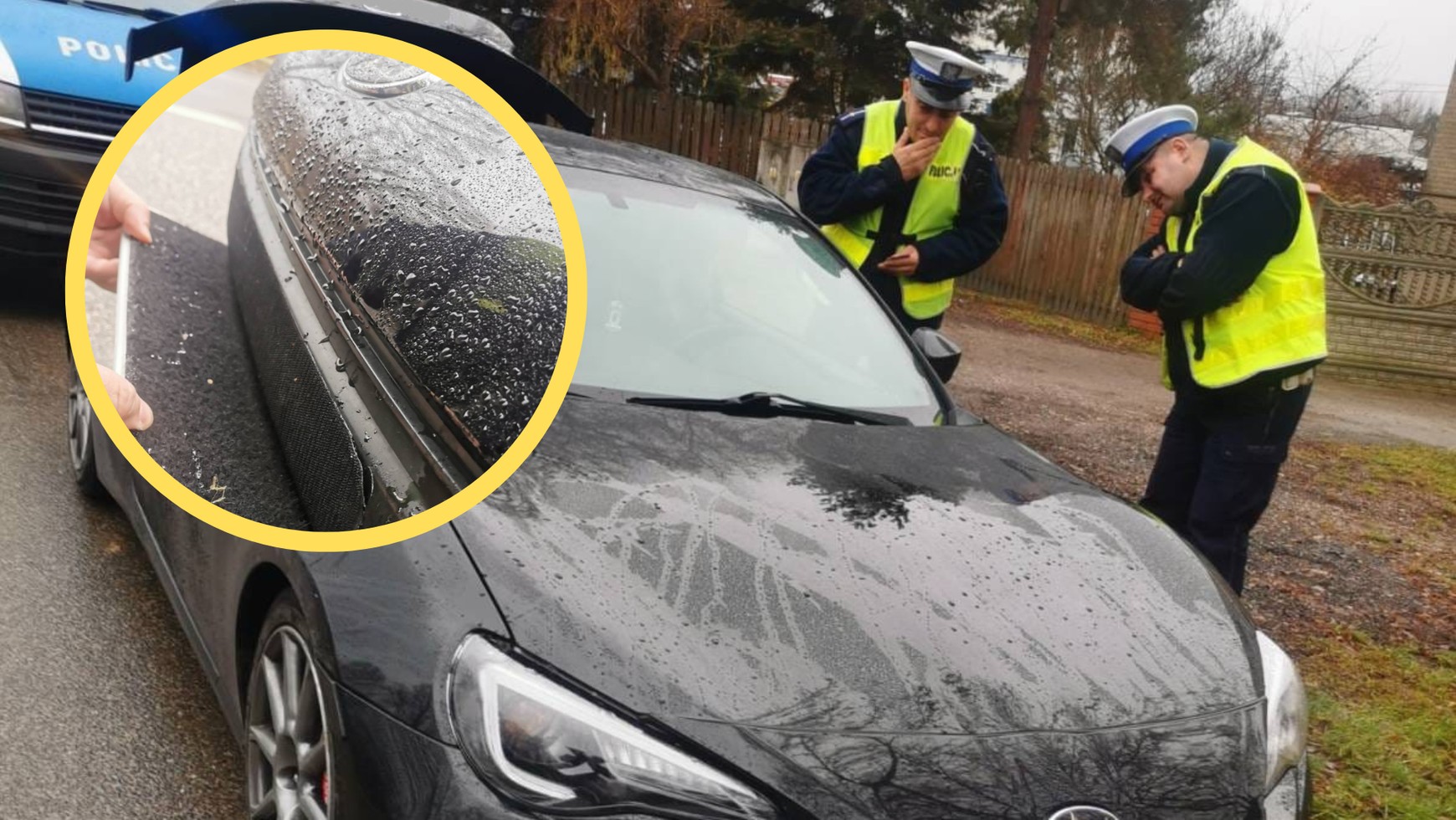 Na zdjęciach udostępnionych przez policję widać, że uwagę funkcjonariuszy przykuł sposób montowania tablicy rejestracyjnej. Była ona przymocowana na rzepach.