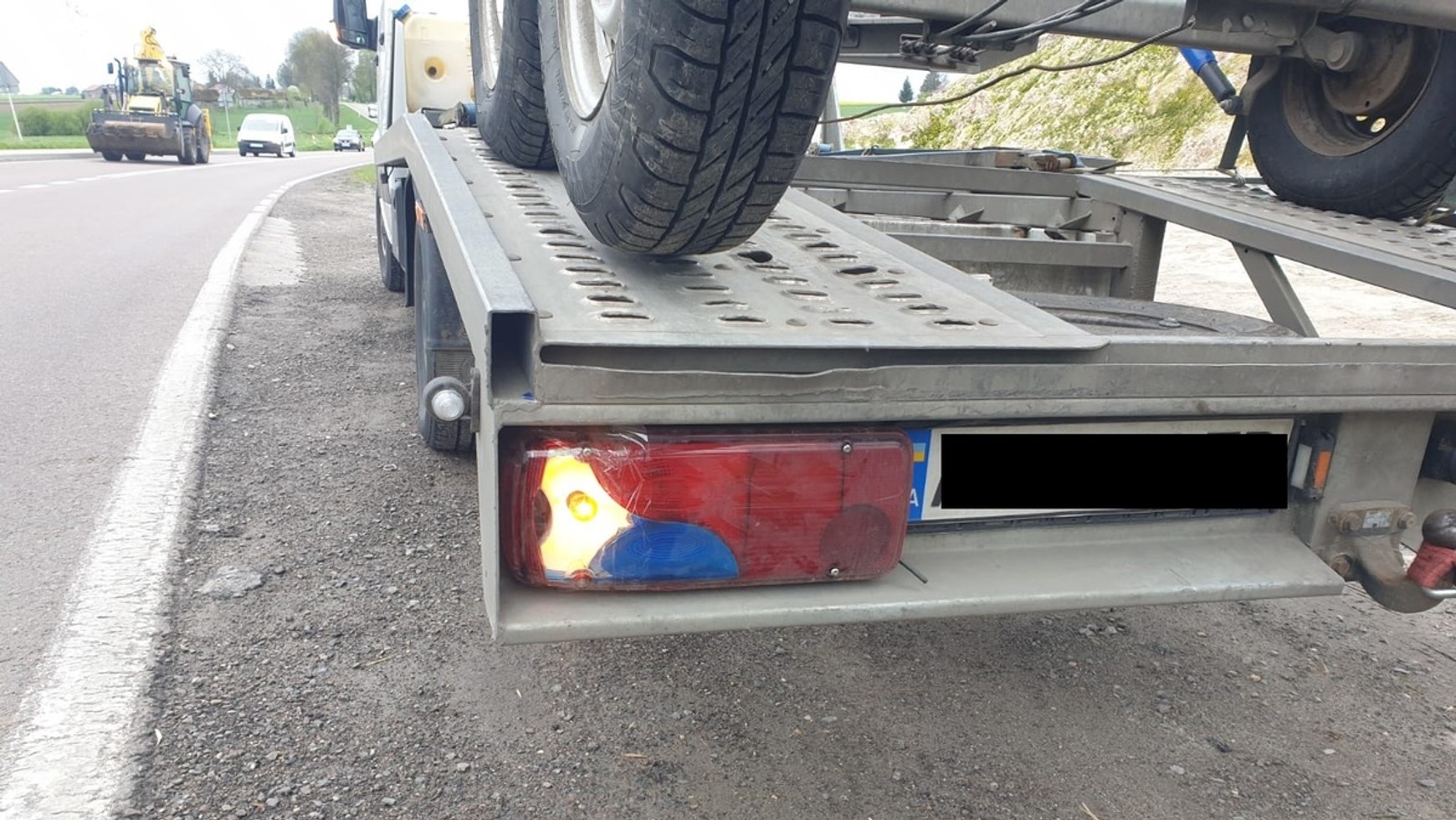 Policjanci z hrubieszowskiej drogówki zauważyli dwie holujące się lawety, które nie miały właściwego oznakowania. Po zatrzymaniu do kontroli 41-letniego obywatela Ukrainy, kierującego Mercedesem, okazało się, że pojazd ma niewłaściwe oświetlenie. Kierunkowskazy świeciły na zielono, a klosze lamp były zabarwione na niebiesko – kolor zastrzeżony dla służb.