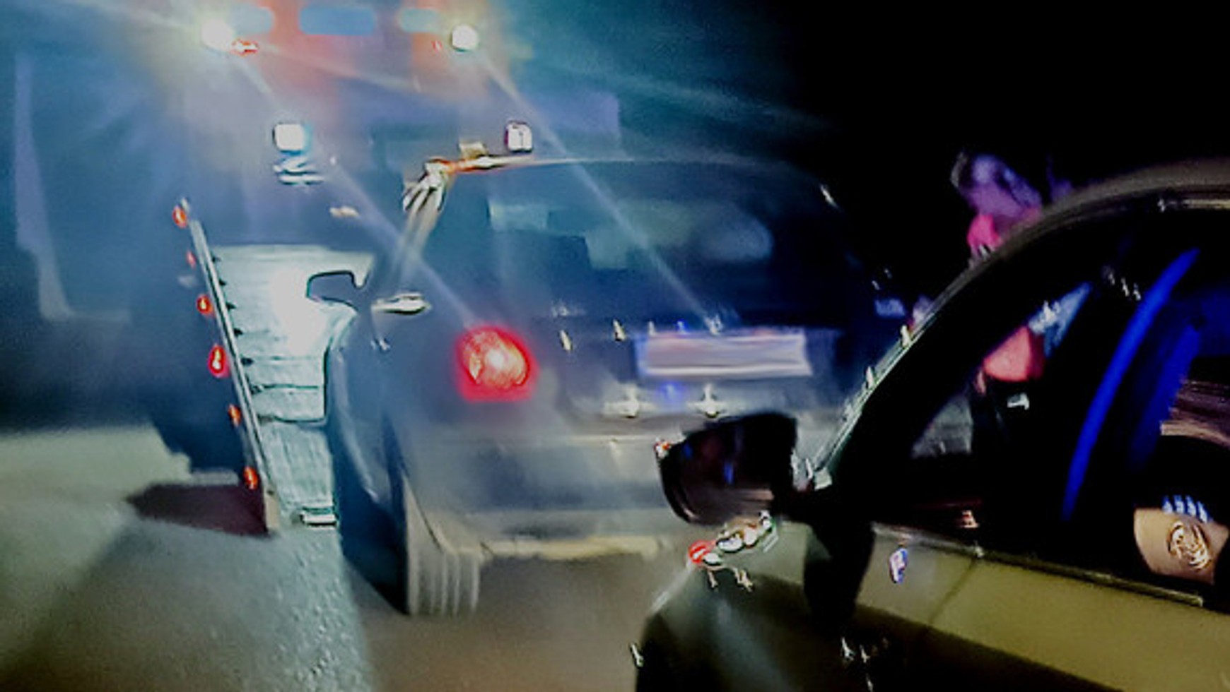 Jechał z wystrzelonymi poduszkami, uszkodzonym kołem i oświetleniem