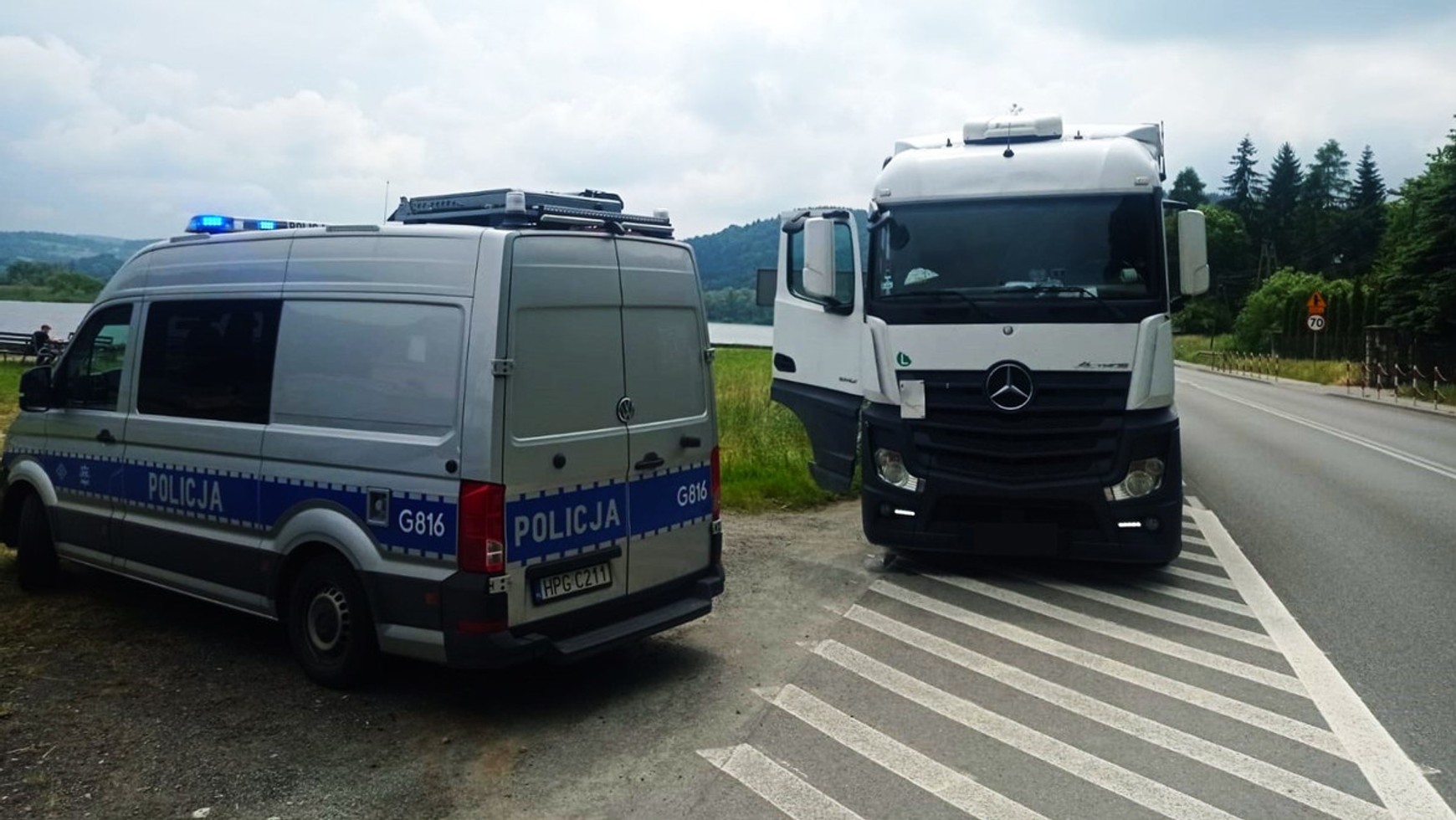 W piątek (9 czerwca) do sądeckich policjantów dotarła informacja o kierowcy ciągnika siodłowego z naczepą, który na jednym z parkingów w Nowym Sączu spowodował kolizję. Kierujący po uszkodzeniu innego pojazdu odjechał z miejsca zdarzenia. Sprawa mogła wydawać się trudna do wyjaśnienia, bo na żadnej z głównych ulic miasta, którymi prawdopodobnie jechał sprawca, policjanci nie zauważyli poszukiwanego pojazdu.