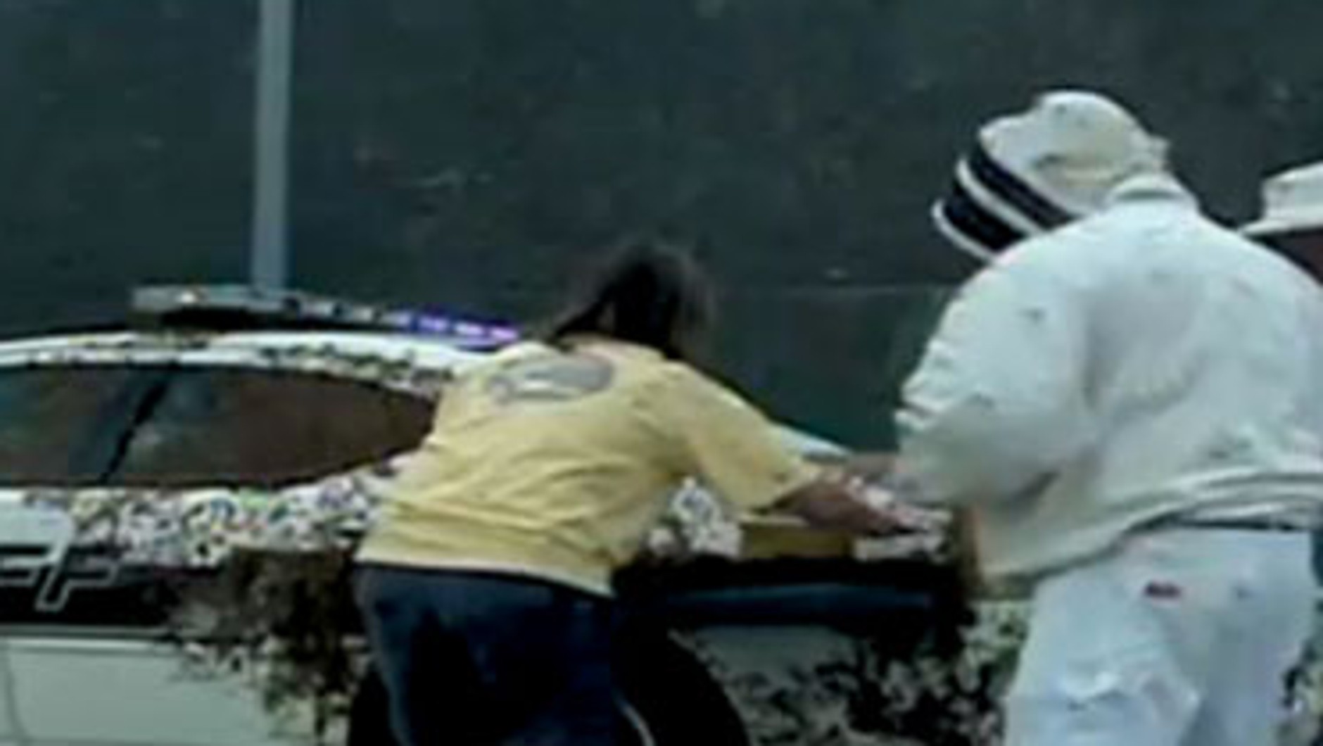 O tragicznym położeniu, w jakim się znalazł, policjant Jenkins przez radio poinformował swoich przełożonych. Przybyłe na ratunek osoby musiały być ostrożne, w pobliżu miejsca zdarzenia znajdowały się szkoły, a dookoła było duże dzieci. Pszczeli ekspert Jennifer Keller spryskała owady wodą z cukrem. Owady zaczęły się lizać nawzajem i przegrupowywać, co pozwoliło na umieszczenie ich z powrotem w ulach. W efekcie przeprowadzonej akcji z nadwozia zdjęto ok. 30-50 tys. owadów. Policjant został użądlony tylko raz, i to na własne życzenie, po tym, gdy uderzył jedną z pszczół.