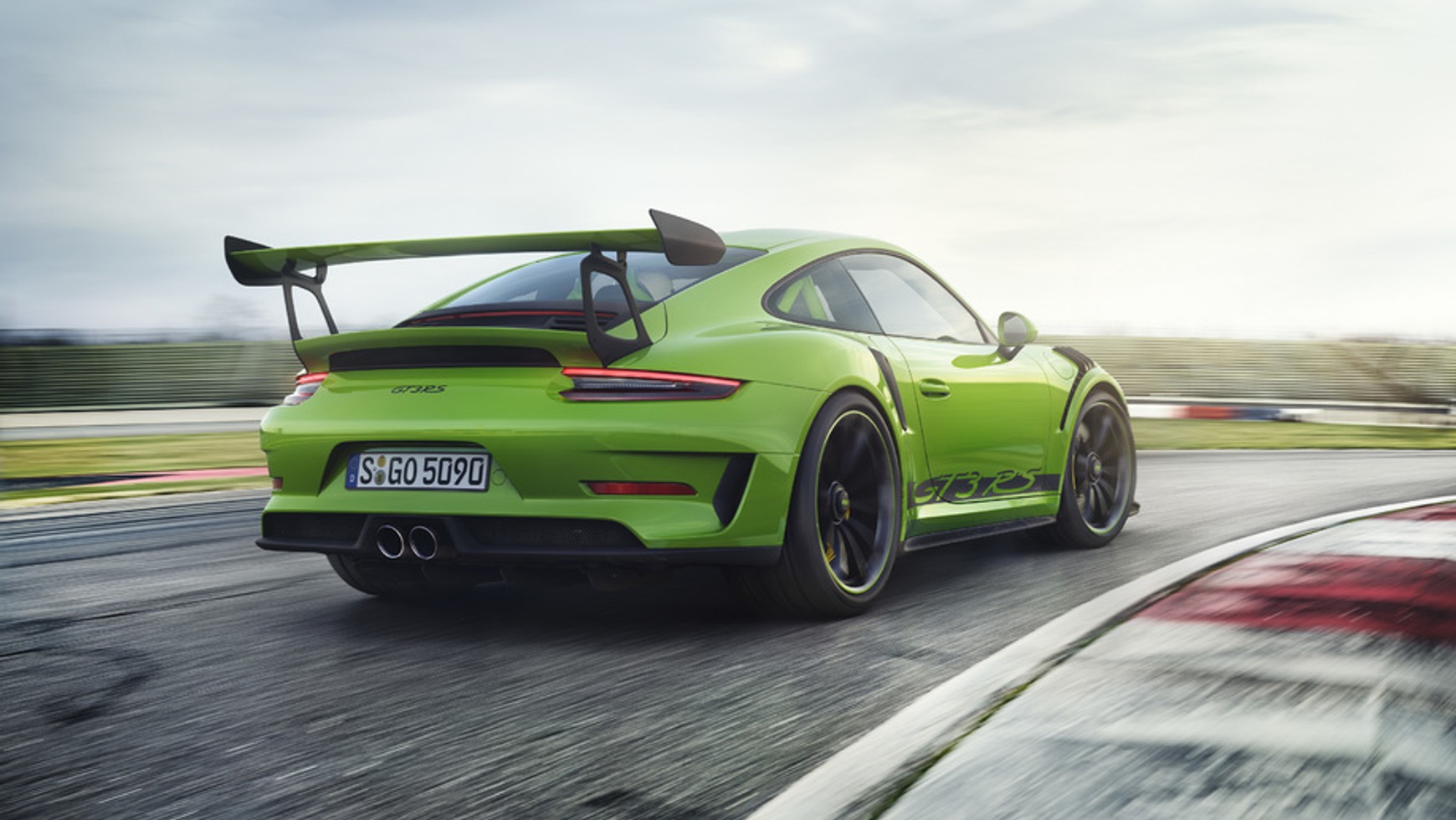 Charakterystyczny element najnowszego GT3 RS to ogromny tylny spoiler zamocowany na stałe. Nie jest to element dekoracyjny, skrzydło ma za zadanie dociskać tył auta i poprawiać trakcję podczas bardzo szybkiego pokonywania zakrętów.