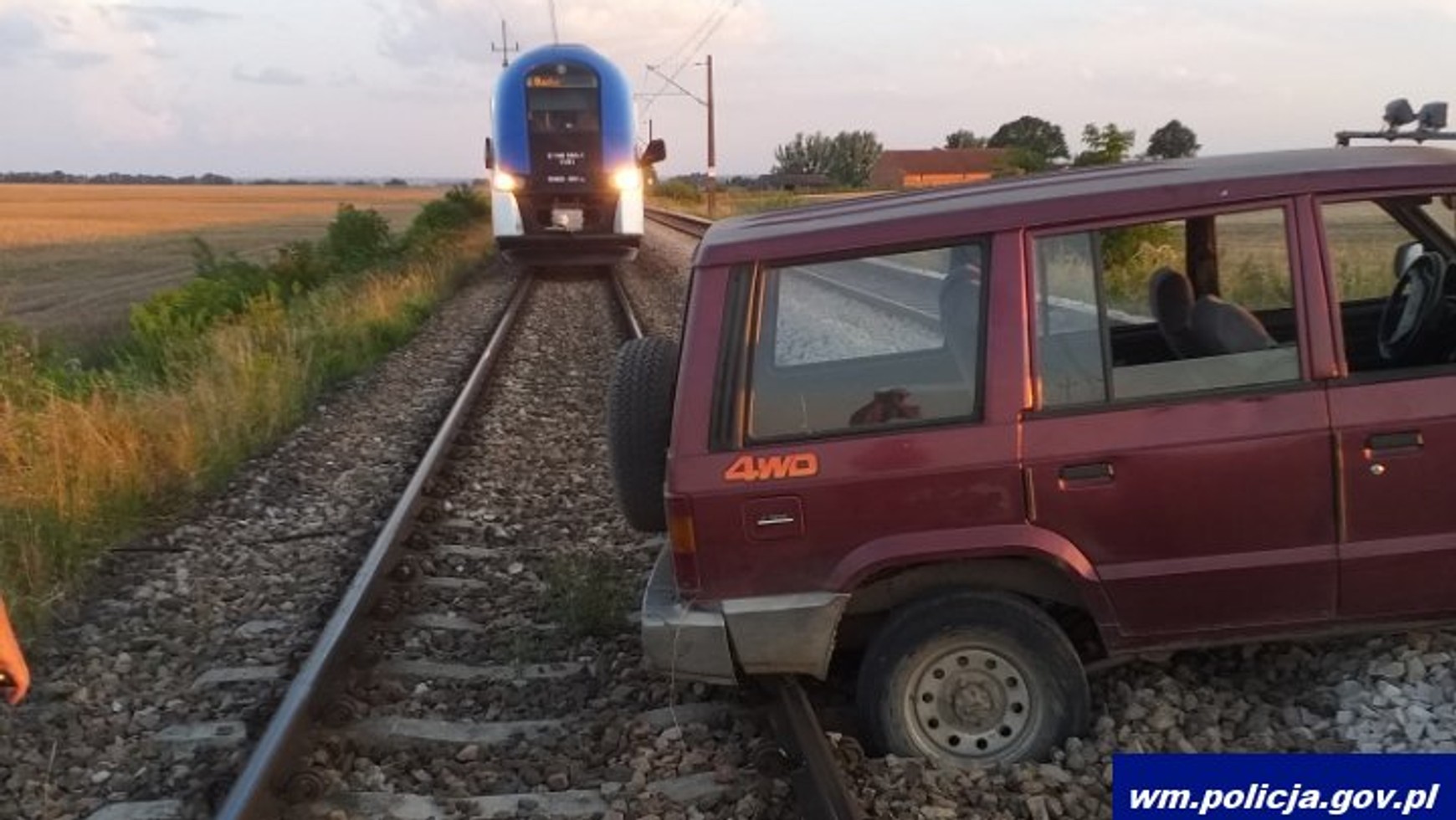 Policjanci potwierdzili na miejscu, że osobowe auto marki ssangyong zawiesiło się na nasypie kolejowym. Przód i tył pojazdu tarasował dwa tory, blokując ruch pociągów w obu kierunkach. W tym miejscu nie ma przejazdu kolejowo-drogowego, auto najprawdopodobniej wjechało z pola.