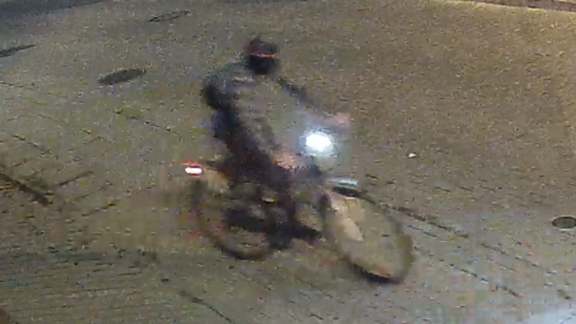 Na nagraniu widać rowerzystę, który w nocy przejeżdża w okolicy, gdzie doszło do zniszczenia pojazdów.