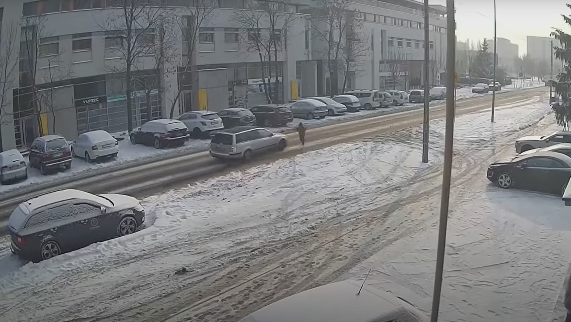 - Na nagraniu z monitoringu widać, jak dziecko wbiega na ośnieżoną jezdnię pod jadący dość szybko samochód