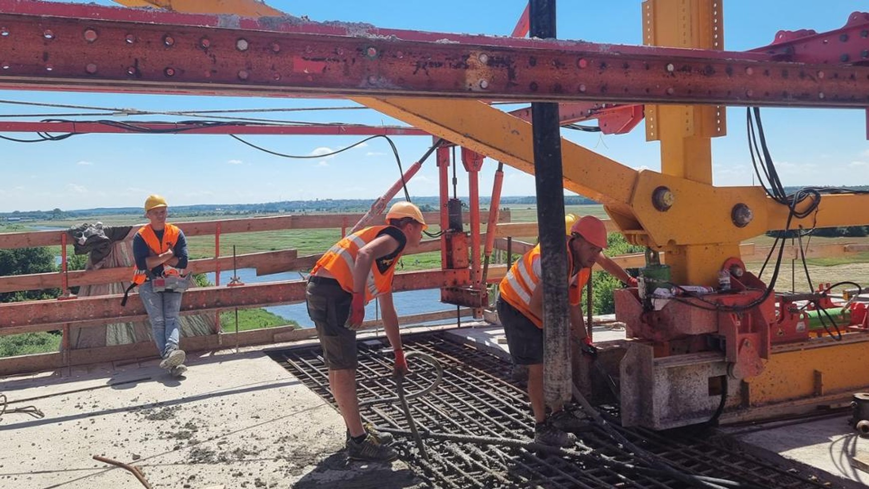 - metodą nawisową – w ten sposób powstaje tzw. część nurtowa mostu o długości 458 m, która właśnie została połączona;
