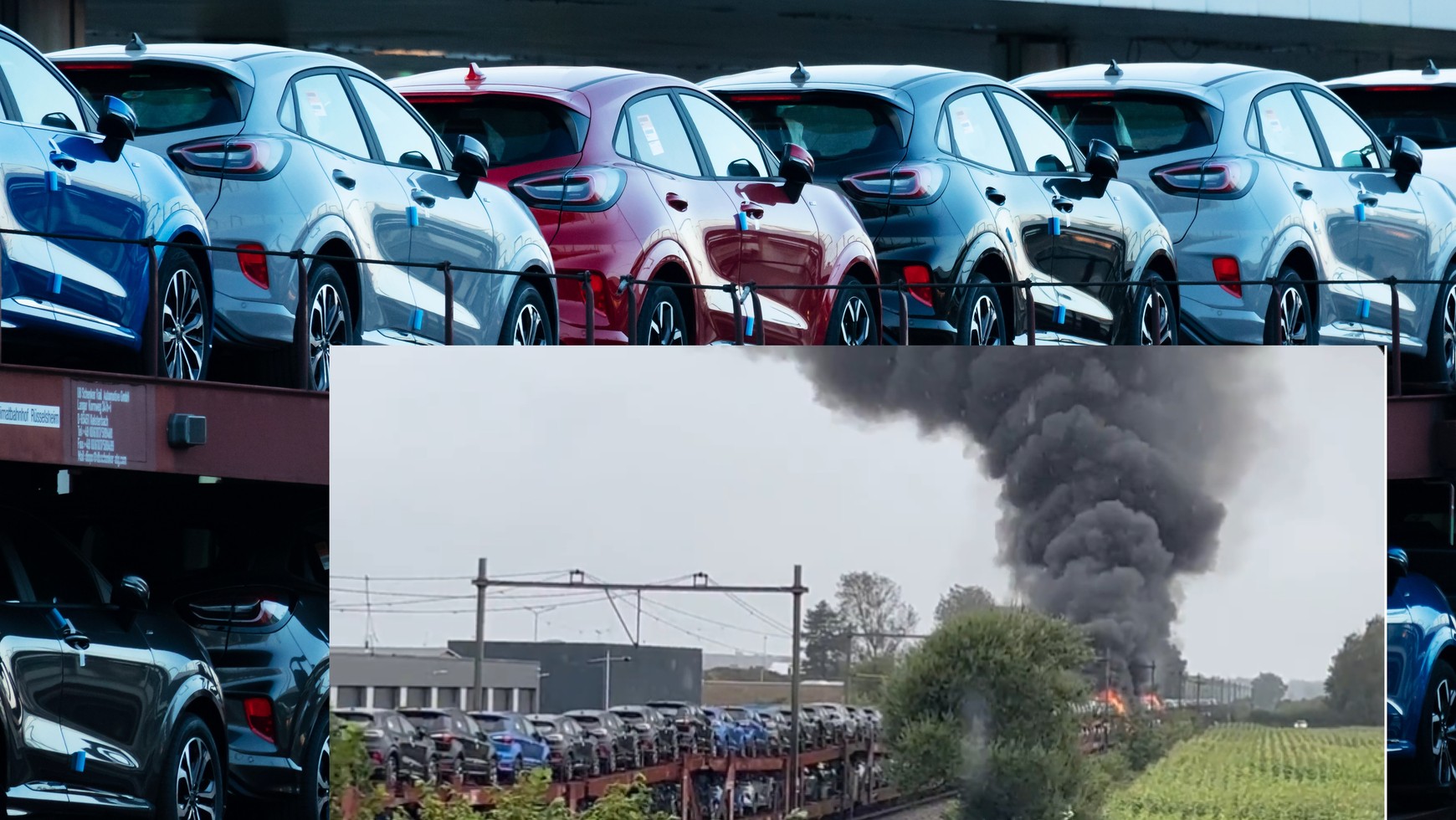 Całe zajście nagrał użytkownik Twittera. Powodem pożaru okazało się zerwanie przewodów trakcyjnych wiszących nad torami. Nie jest znana przyczyna ich awarii. Niestety przewody spadły na jadące na wagonie samochody, co doprowadziło do wzniecenia ognia, który powoli przenosił się z pojazdu na pojazd.