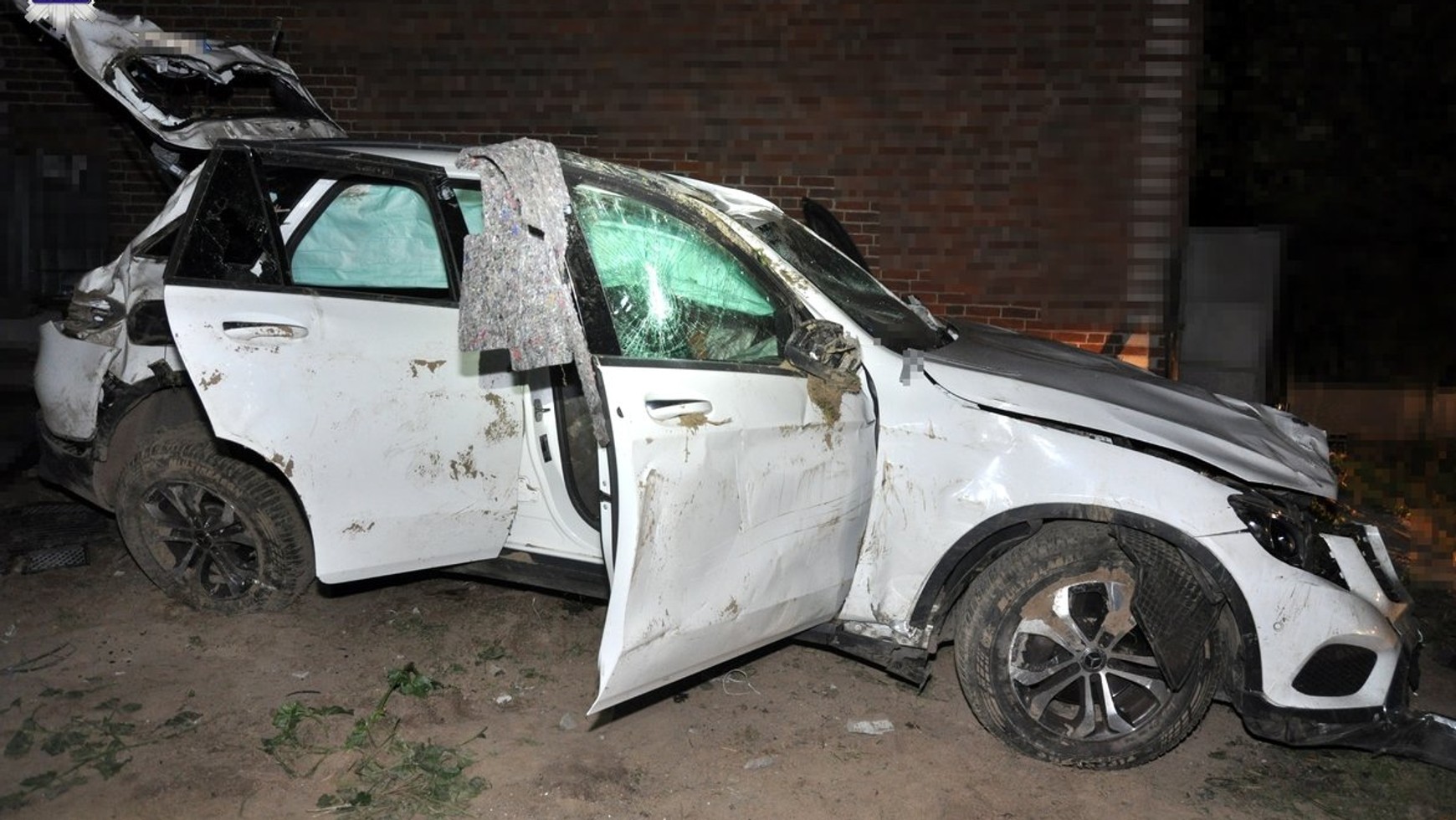 Jednak, jak się można spodziewać, nie wszystko poszło zgodnie z planem. Kierowca Mercedesa stracił panowanie nad autem. Dachował, uszkodził kilka świerków i tu nastąpiło "grande finale" — lądowanie z telemarkiem w ogrodzie. Po drodze zniszczyli betonowy płot i tunel ogrodowy.