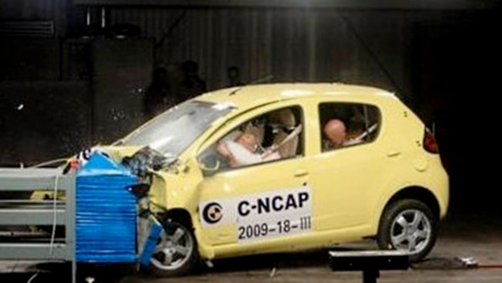 Testy europejskiego programu oceny nowych samochodów (NCAP - New Car Assessment Programme) zostały tak obmyślane, aby odtworzyć pewne typowe wypadki. A więc zderzenie czołowe to nie wbicie się jednego auta w drugie, ale kraksa z przesunięciem. Takim, że samochód uderza 40 proc. swojej szerokości od strony kierowcy w deformowalną, nieruchomą przeszkodę. Wystające, wsteczne lusterka nie są wliczane do tej szerokości. Prędkość wynosi zawsze 64 km/h i jest o 8 km/h wyższa niż zalecają władze wspólnoty (56 km/h), konkretnie European Enhanced Vehicle-safety Committee. Szerokość "miękkiej", aluminiowej bariery została określona na 1 metr, jej głębokość na 54 centymetry. Poza kierowcą z przodu kabiny jest zawsze dorosły pasażer obok niego.
