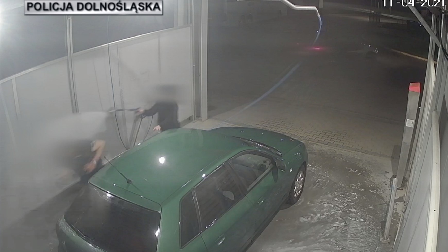 Do kolejnej próby kradzieży na myjni samochodowej doszło 11 kwietnia późnym wieczorem w pow. jaworskim na Dolnym Śląsku. Do samochodu marki Audi nagle podszedł młody mężczyzna i zaczął otwierać drzwi. Nie zdążył jednak wsiąść za kierownicę, ponieważ czujna kobieta wykorzystała myjkę ciśnieniową, którą miała w rękach, i skierowała strumień na napastnika. Mężczyzna w koszulce z napisem „Policja” nie podjął drugiej próby. Odszedł i wsiadł do widocznego na nagraniu Volkswagena, w którym czekał na niego kolega. Kobieta powiadomiła policję.