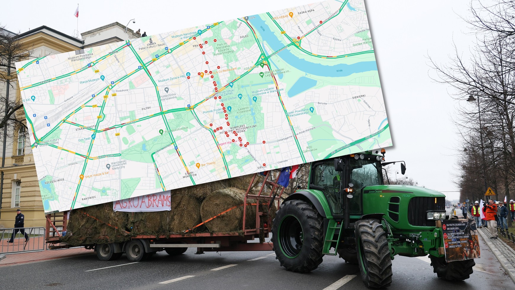 Zamknięte są ulice w okolicach, gdzie odbywają się zgromadzenia stacjonarne rolników, na które wydał zgodę warszawski ratusz. Są to m.in. ulice prowadzące do Sejmu lub umożliwiające dojazd w jego stronę — Al. Ujazdowskie, Nowy Świat, ul. Belwederska, Spacerowa, częściowo Gagarina, fragmenty al. Szucha, część ul. Puławskiej, ul. Piękna i ul. Myśliwiecka oraz ul. Jana III Sobieskiego w Wilanowie.
