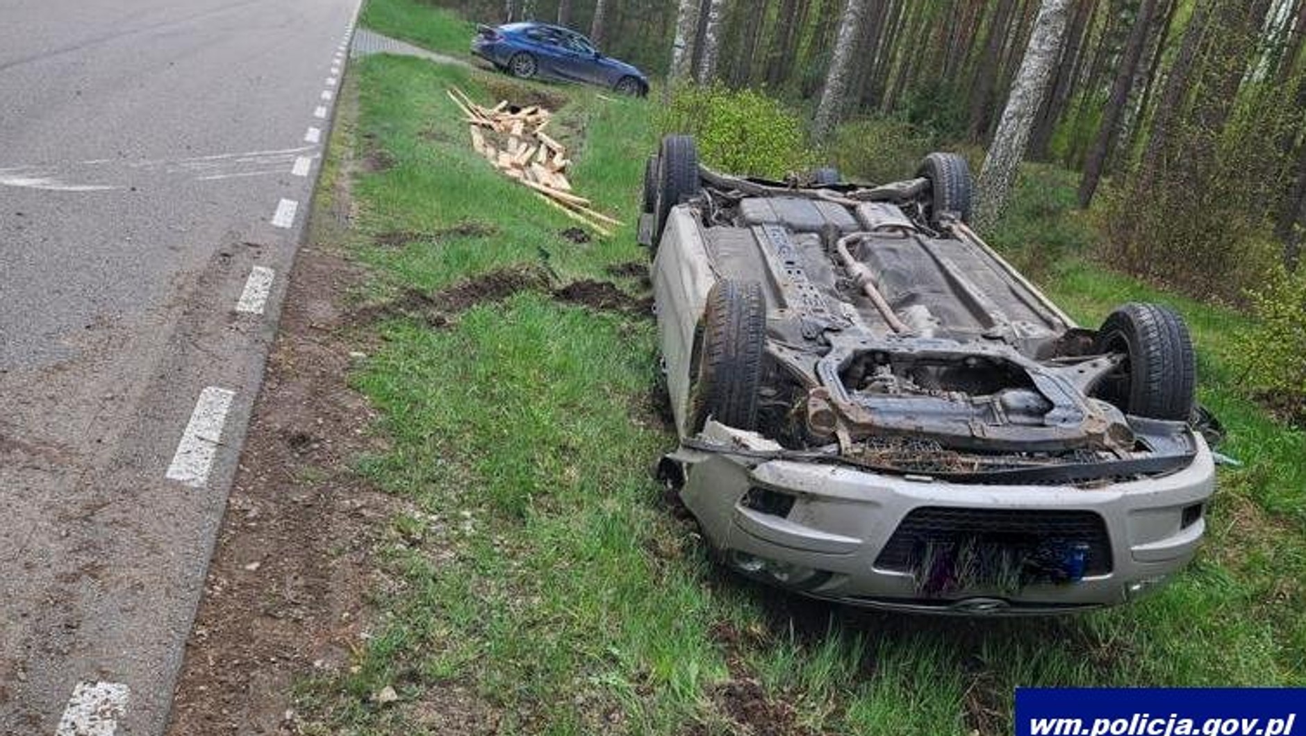 Tuż przed maskę samochodu jadącego z przyczepką z pobliskiego lasu wyskoczyła sarna. Prowadzący Hyundaia, chcąc uniknąć zderzenia, odbił w bok i zjechał do przydrożnego rowu. Skończyło się dachowaniem auta. Kierowca jechał sam. 60-letniemu mieszkańcowi Szczytna na szczęście nic się nie stało.