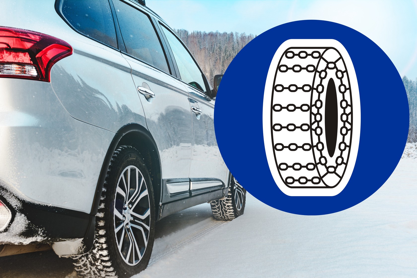 Poprawna odpowiedź: Nakaz używania łańcuchów na drodze za znakiem w przypadku, gdy na tej drodze zalega śnieg