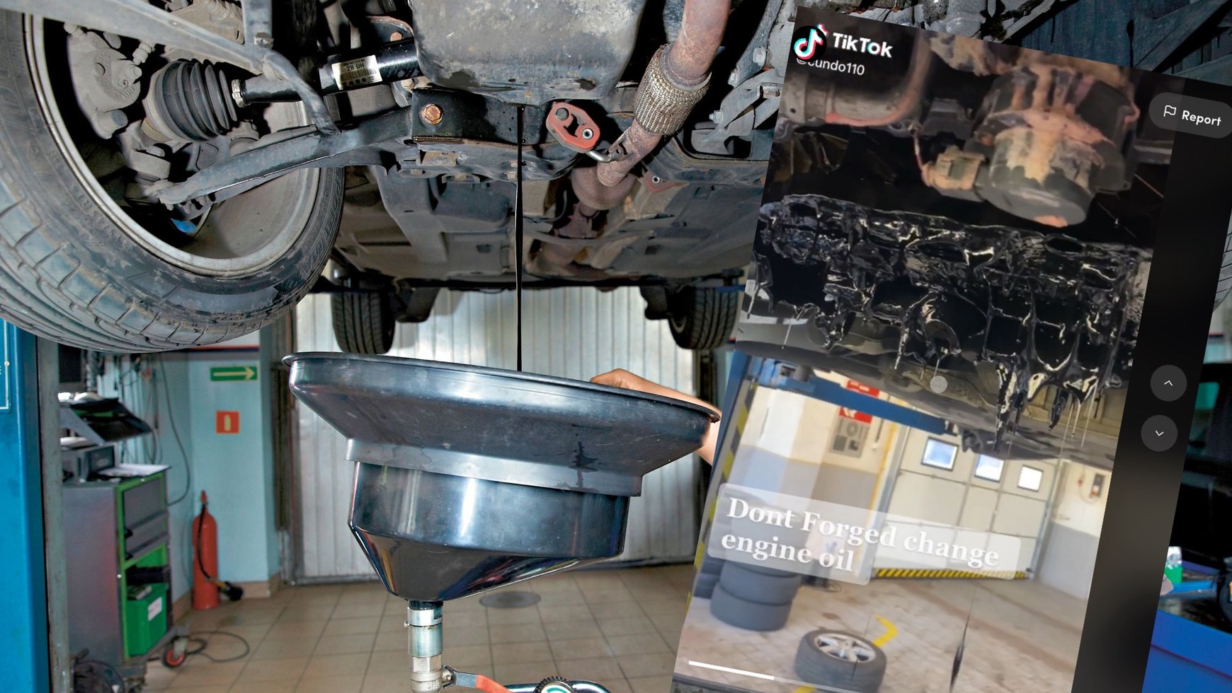 Widoczna na nagraniu czarna maź skapująca (trudno to nazwać płynięciem) spod jednostki napędowej kiedyś była olejem silnikowym. To właśnie ona prawdopodobnie doprowadziła do poważnej usterki, zmuszając właściciela do odwiedzenia warsztatu samochodowego.