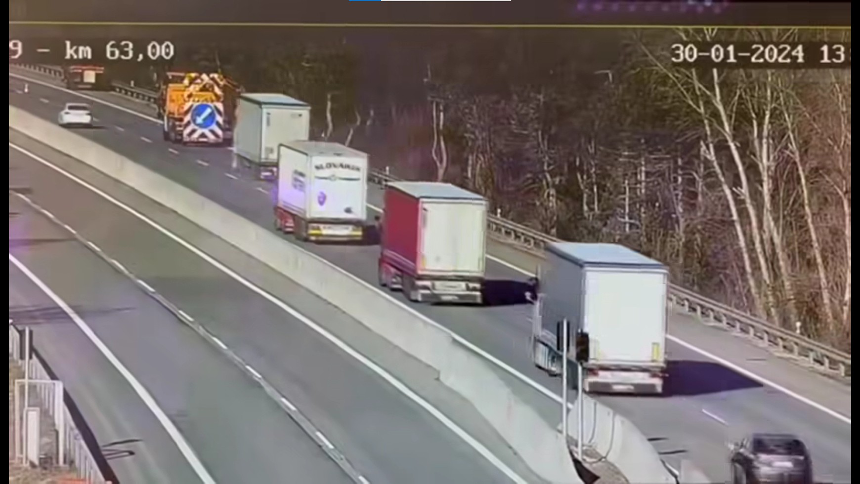 Do wypadku doszło 30 stycznia na autostradzie D1 łączącej Bratysławę z Koszycami. Zarejestrowane na monitoringu autostradowym nagranie, udostępnione przez słowacką policję, pokazuje ciężarówkę jadącą kończącym się pasem, ponieważ na poboczu odbywały się roboty drogowe.
