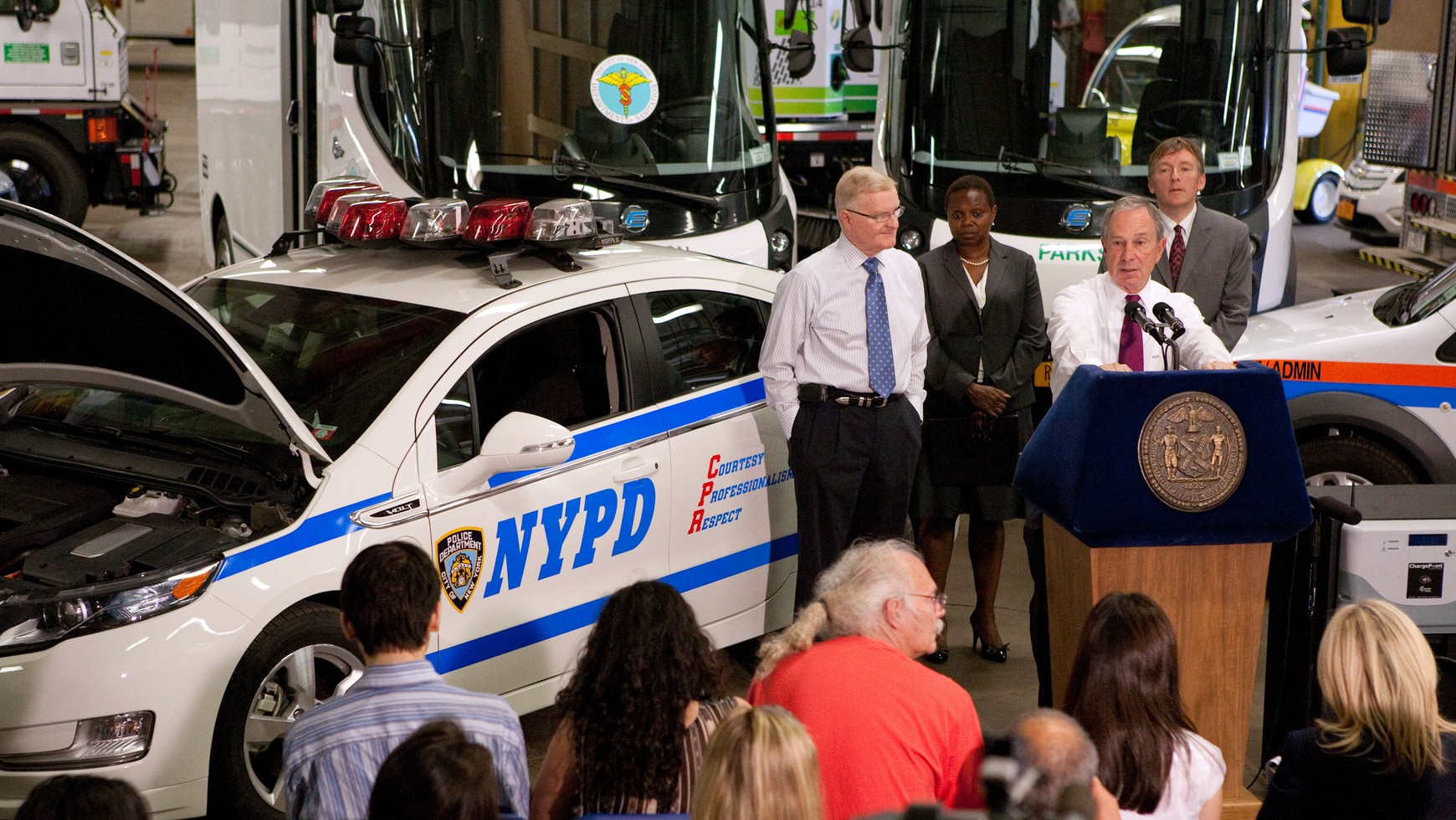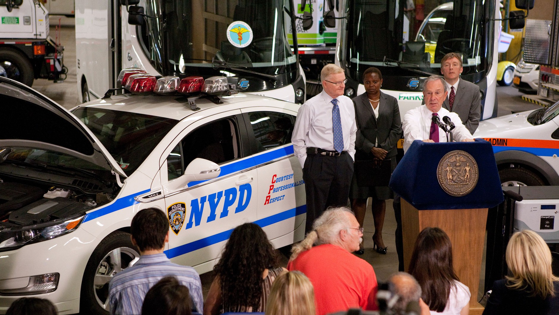 Burmistrz Nowego Jorku Michael R. Bloomberg, podpina do ładowania nowego Volta.