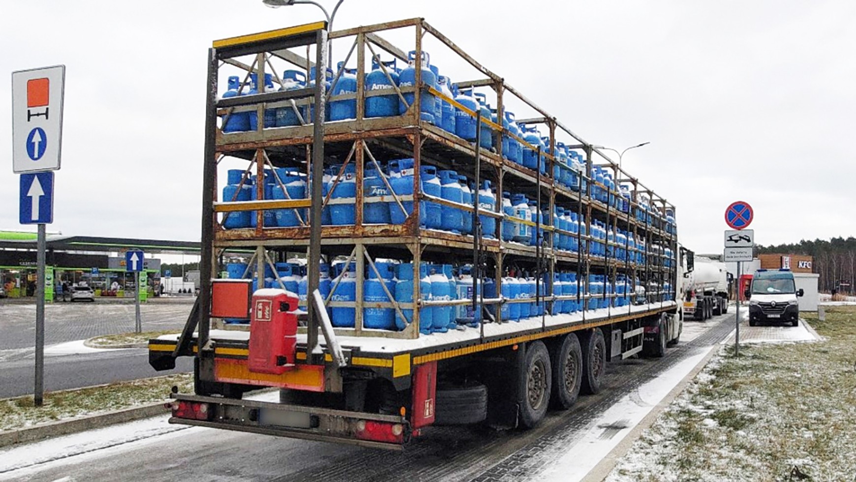 Dzień wcześniej na tej samej trasie inspektorzy wykryli dużo poważniejsze nieprawidłowości w jednym z transportów. Pojazd, przewożący ponad 24 tony roztworu wodorotlenku sodu, który może powodować poparzenia, a nawet śmierć, miał uszkodzoną oponę naczepy do tego stopnia, że widoczny był kord (wewnętrzna warstwa wzmacniająca) opony.