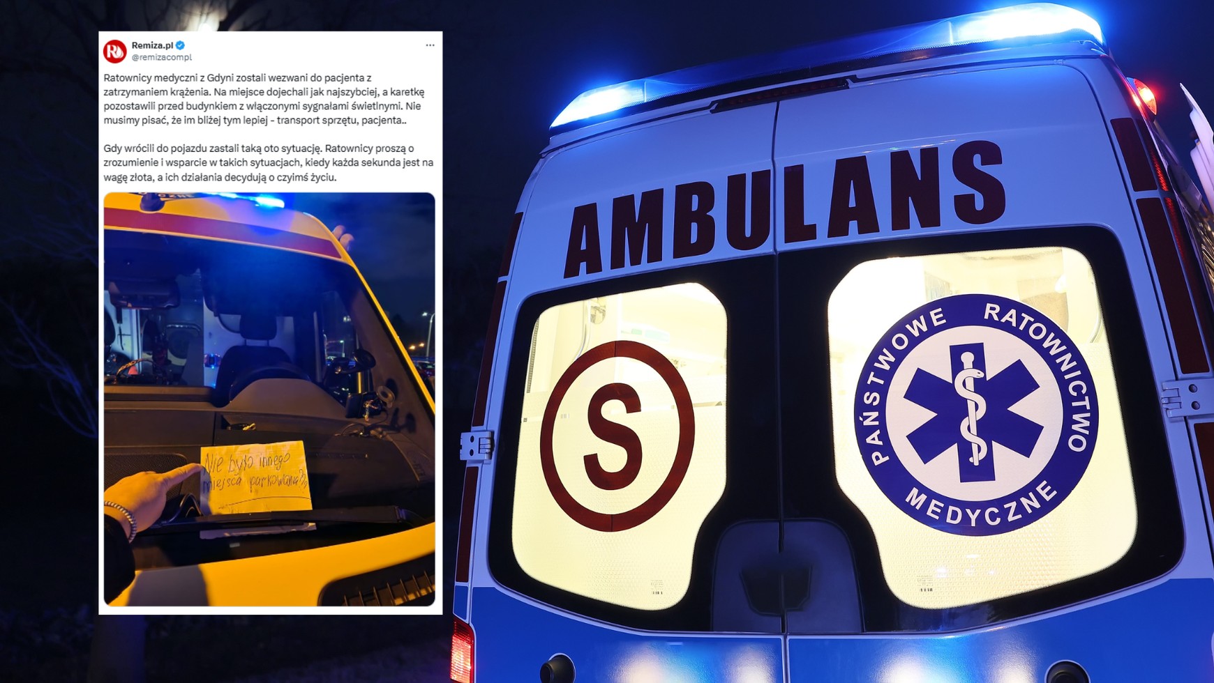 "Ratownicy medyczni z Gdyni zostali wezwani do pacjenta z zatrzymaniem krążenia. Na miejsce dojechali jak najszybciej, a karetkę pozostawili przed budynkiem z włączonymi sygnałami świetlnymi. Nie musimy pisać, że im bliżej tym lepiej — transport sprzętu, pacjenta. Gdy wrócili do pojazdu zastali taką oto sytuację" — można przeczytać we wpisie na profilu serwisu Remiza.