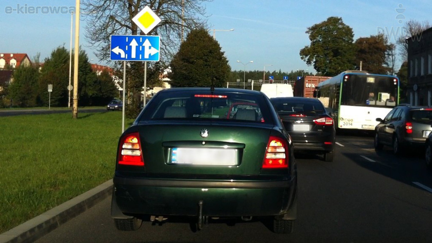 Czy z tego pasa ruchu masz prawo jechać prosto przez skrzyżowanie?