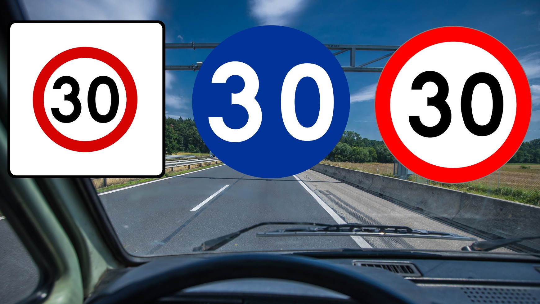 Poprawna odpowiedź: zakaz jazdy z prędkości niższą niż 30 km/h, jeśli pozwalają na to warunki na drodze