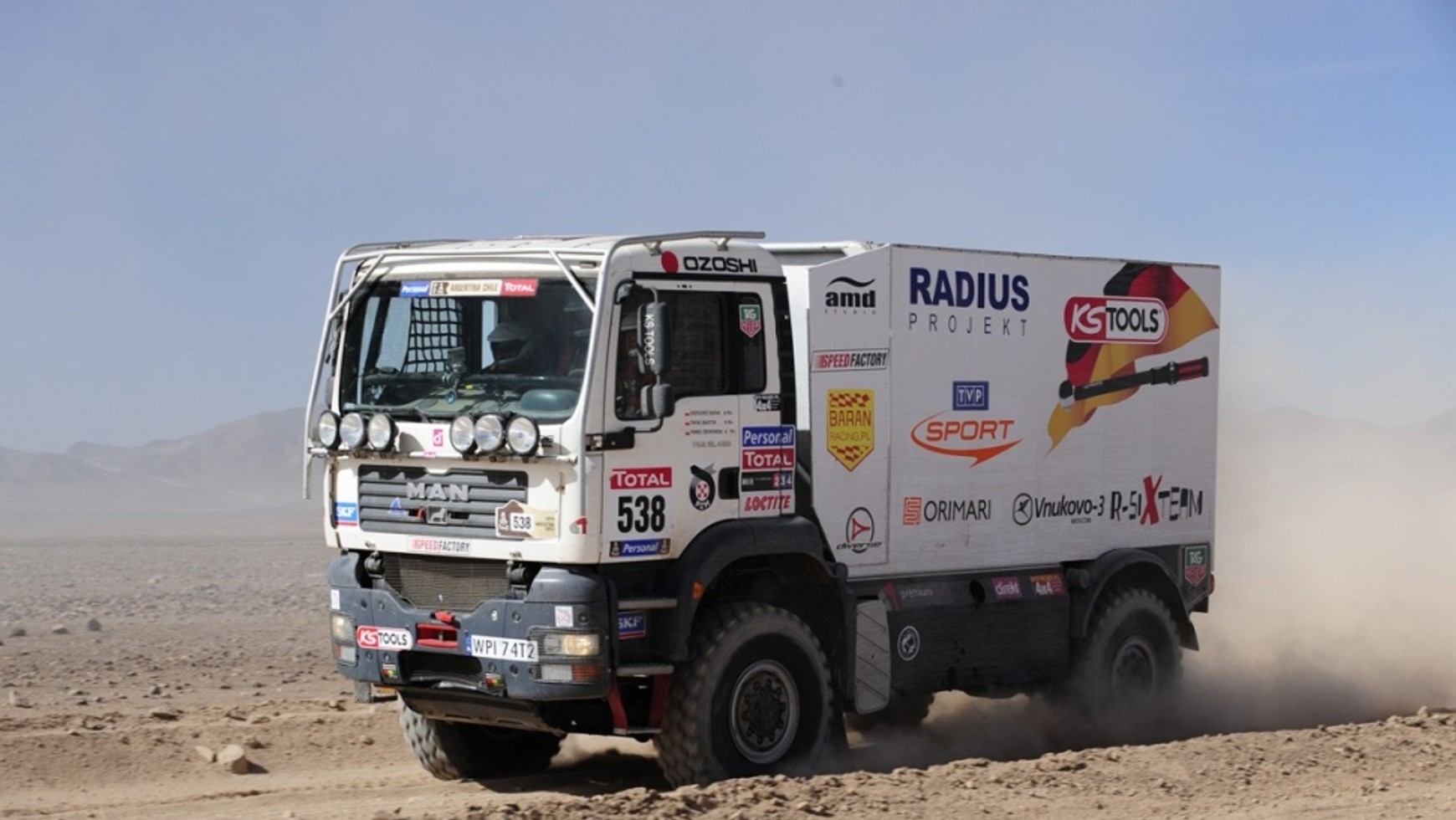 Stephane Peterhansel (BMW) zrekompensował sobie wczorajsze straty, odnosząc w Iquique kolejne 53 etapowe zwycięstwo w Dakarze. Francuz okazał się szybszy o 47 sekund od obecnego lidera rajdu, Carlosa Sainza (Volkswagen). Nasser al-Attiyah przegrał etap z Markiem Millerem (obydwaj Volkswagen), ale obronił drugie miejsce w klasyfikacji generalnej. Załoga R-SIXTEAM Robert Szustkowski - Jarosław Kazberuk (Mitsubishi) na szóstym etapie uzyskała 50. czas odcinka i w klasyfikacji generalnej awansowała na 43. pozycję. Jarosław Kazberuk: Od pewnego czasu prowadzimy auto na zmianę z Robertem. To przynosi dobre efekty. Robert jest szybki i lepiej się sprawdza na twardych odcinkach, ja mam, co oczywiste, zdecydowanie większe doświadczenie na piasku. Jak na razie auto mamy w dobrym stanie technicznym, i omijają nas większe awarie, oprócz typowych napraw serwisowych, i oby tak dalej. Wczoraj na mecie okazało się, że mamy problemy z półosią, ale udało się wszystko naprawić przed startem do dzisiejszego etapu. Staramy się jechać sensownie i nadmiernie nie ryzykujemy. Dakar w Argentynie, nie odbiega skalą trudności od afrykańskiego, takie same piekło - śmieje się pilot R-SIXTEAM.Robert Szustkowski: Cieszę się, ze dotarliśmy na metę przed zmrokiem, bo mógłby być kłopot na wydmach. Fantastyczny zjazd kończący etap, wrażenia niesamowite. Etap był bardzo ciężki, wyczerpujący i długi, mieliśmy trochę problemów jak pojawił się fesh fesh. Utknęliśmy też na wydmie, ale w miarę szybko udało nam się wygrzebać z piasku. Najważniejsze, że mamy sprawny samochód, trochę pościeraliśmy przód i mamy uszkodzony zderzak, ale generalnie wszystko jest w porządku. W wadze ciężkiej, Wladimir Czagin odniósł piąte zwycięstwo w tegorocznym rajdzie, drugi czas odnotował jego temowy kolega Firdaus Kabirow, który stracił do Czagina 12 min. i 3 sek., trzecie miejsce i kolejny Kamaz, czyli Ilgizar Mardiejew. W klasyfikacji generalnej Kamazy rozdziela trzecia pozycja Ginafa, czyli Marcel van Vliet. Grzegorz Baran/Rafał Marton/Paweł Zborowski, jedyna polska ciężarówka w rajdzie, podczas dzisiejszego, niezwykle trudnego etapu, miała sporo kłopotów na trasie. W konsekwencji Polacy muszą się liczyć z 8 godz. karą, z powodu ominięcia dwóch punktów kontrolnych.Rafał Marton: Dzisiejszy etap niestety nie był dla nas szczęśliwy, mieliśmy sporo problemów. Na 150 km pękła nam opona na zjeździe, która wyrwała wentyl, to była bardzo niebezpieczna sytuacja. Wymiana opony i wentyla zajęła nam sporo czasu, straciliśmy około 45 min. W tym czasie wyprzedziło nas dużo aut, było mnóstwo kurzu, i słaba widoczność, przez co znowu straciliśmy sporo czasu. Ostatnie 30 km to wysokie, trudne i ścięte wydmy po 200 m, w zeszłym roku na takich wydmach dachował Grzesiek. Kiedy dojeżdżaliśmy do wydm zapadł już zmrok, na 15 km przed metą było już kompletnie ciemno i niebezpieczne, spadziste ogromne wydmy, których nie udało się nam pokonać. W tych ciemnościach nie mogliśmy odnaleźć punktu, nie chcieliśmy też ryzykować dachowania MAN-em, mając na uwadze doświadczenia Grześka z zeszłego roku. Zdecydowaliśmy, więc, że ominiemy dwa punkty i pojedziemy łatwiejszą drogą do mety. Ominięcie jednego punktu skutkuje karą 4 godzin, także mamy 8 godzin do tyłu. Podjęliśmy taką decyzję, ponieważ musimy mieć na uwadze, również Roberta i Jarka. Jutro jest najdłuższy 600 km etap i myślę, że jeden z najtrudniejszych. Nie mogliśmy sobie pozwolić na zostanie na noc na pustyni, ponieważ musimy wymienić sprzęgło w ciężarówce, tak żeby dysponować sprawnym autem przed jutrzejszym etapem. Trochę szkoda, ale rajd trwa dalej, najważniejsze, że jedziemy i oby do mety - dodaje pilot R-SIXTEAM.Grzegorz Baran: Ważne, że do przodu, do fabryki i tak nie mamy żadnych szans. Od lat w czołówce nic się nie zmienia, i na mecie królują Kamazy. Stanowimy zaplecze dla Roberta i Jarka, więc nasz MAN jest dosyć mocno obciążony i mamy podwójną odpowiedzialność. Założeniem była meta dla obydwu załóg. Mam nadzieję, że uda się nam ją osiągnąć.Wyniki: Etap 6: Antofagasta - Iquique 598 km (OS 418 km)SAMOCHODY:1. Stephane Peterhansel/Jean-Paul Cottret (F) BMW X3 CC 4:23.552. Carlos Sainz/Lucas Cruz (E) Volkswagen Race Touareg 2 +473. Mark Miller/Ralph Pitchford (USA/ZA) Volkswagen Race Touareg 2 +8.554. Nasser al-Attiyah/Timo Gottschalk (Q/D) Volkswagen Race Touareg 2 +11.345. Leonid Nowickij/Andreas Schulz (RUS/D) BMW X3 CC +17.32....50. Robert Szustkowski/Jarosław Kazberuk (PL) Mitsubishi Pajero +03.34.30.Klasyfikacja generalna:SAMOCHODY:1. Carlos Sainz/Lucas Cruz (E) Volkswagen Race Touareg 20:35.332. Nasser al-Attiyah/Timo Gottschalk (Q/D) Volkswagen Race Touareg +15.243. Mark Miller/Ralph Pitchford (USA/ZA) Volkswagen Race Touareg 2 +17.47. 4. Carlos Sousa/Mathieu Baumel (P/F) Mitsubishi Racing Lancer +1:34.04 5. Krzysztof Hołowczyc/Jean-Marc Fortin (PL/B) Nissan Navara +1:43.40......43. Robert Szustkowski/Jarosław Kazberuk (PL) Mitsubishi Pajero + 17.42.25