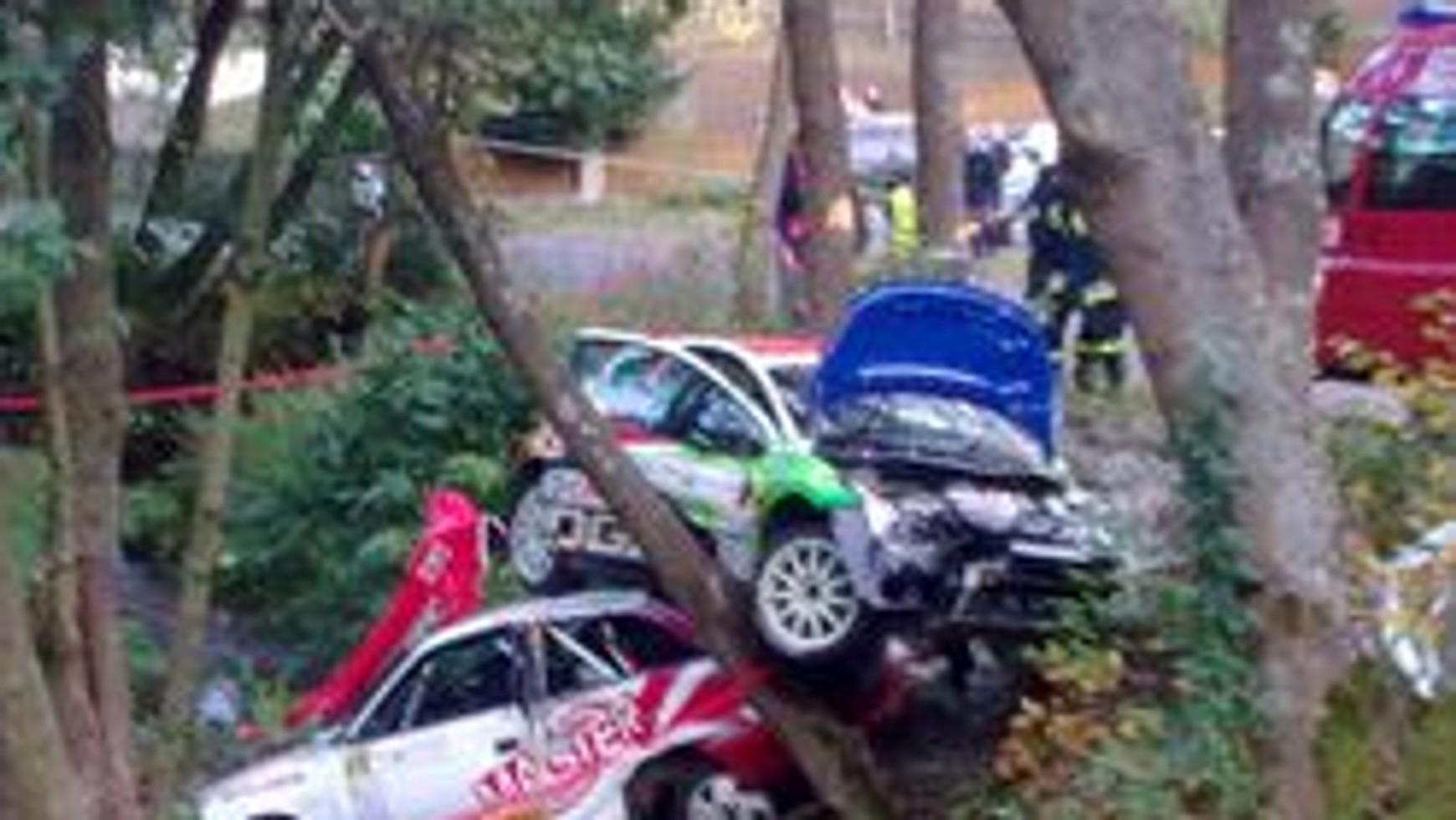 Peugeot 207 S2000 Kuzaja i Perry'ego wypadł z trasy już za metą lotną i uderzył w Opla Astrę, który stał tam po poprzednim przejeździe Radowego Pucharu Polski, należącą do Tomasza Poręby.