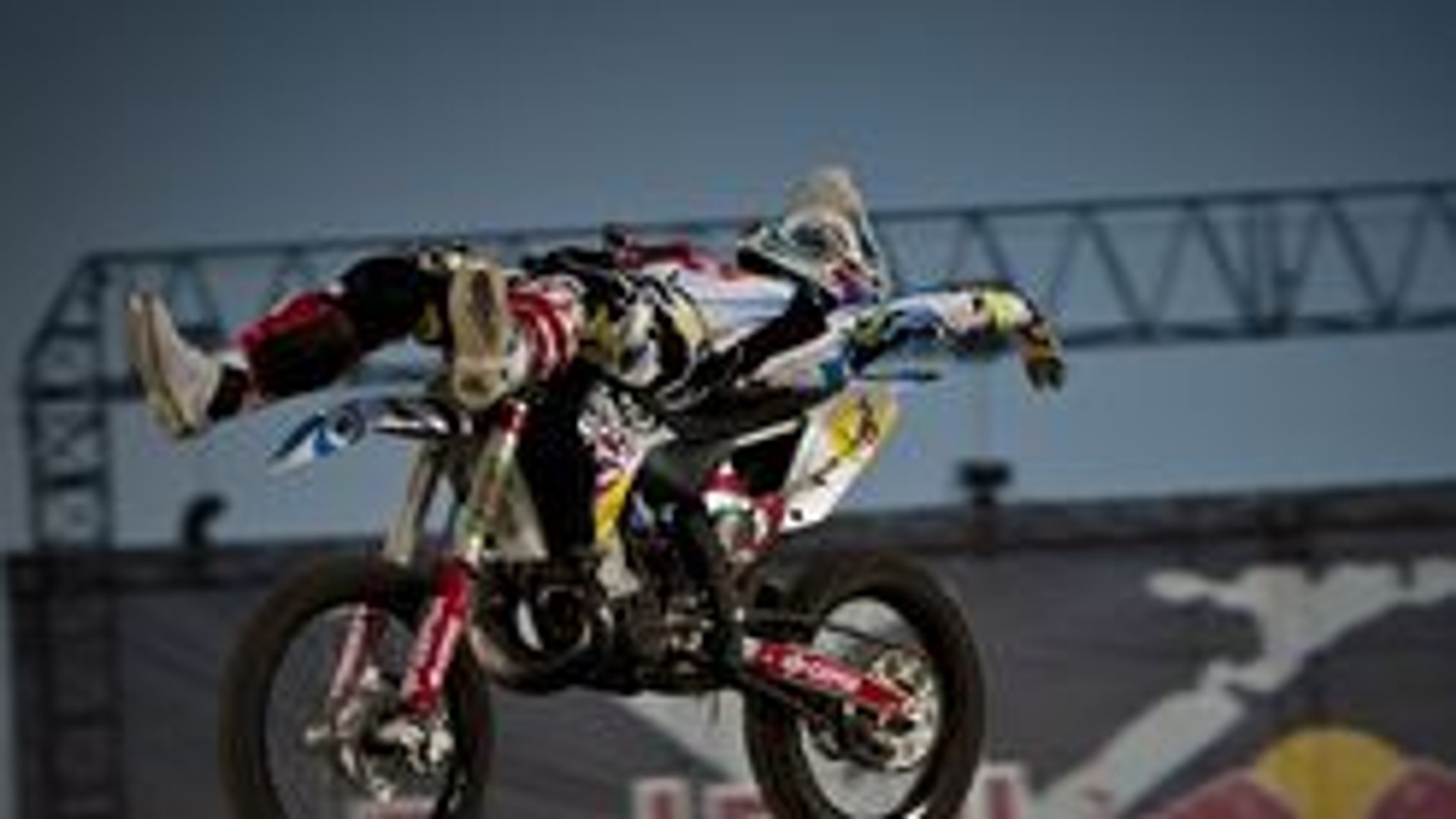 To była noc niezapomnianych wrażeń. Na potrzeby trzeciego przystanku światowej serii Red Bull X-Fighters w Teksasie powstał jeden z największych torów freestyle motocrossowych: 4200 m3 ziemi oraz 15 różnorodnych kickerów dzięki którym zawodnicy wylatywali na 15 metrów wzwyż i pokonywali dystans 40 metrów. Fani zebrani w Forcie Worth po raz pierwszy wstrzymali oddech, kiedy Thomas Pages próbował wykonać frontflipa. Niestety w trakcie lądowania Francuz stracił kontrolę nad motocyklem i uderzył w ziemię. Po kilkunastu minutach okazało się że Pages nabawił się kontuzji biodra.