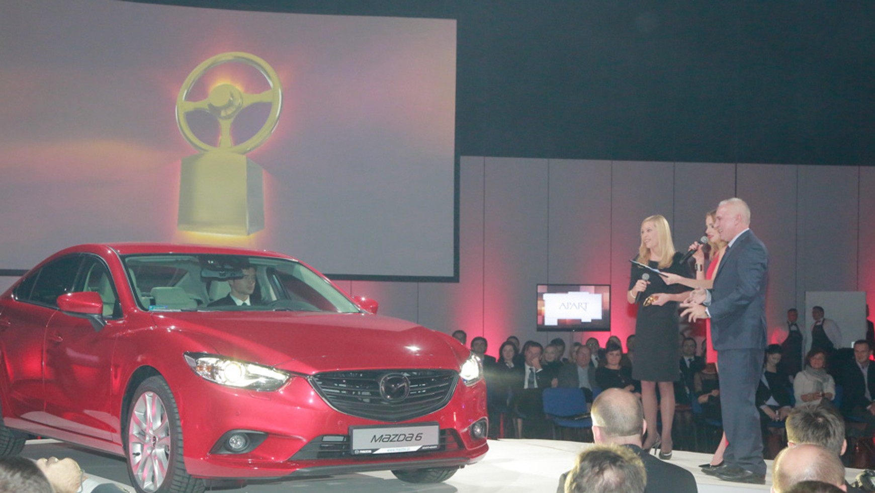 Wielka Gala tygodnika Auto świat podczas której wręczono prestiżowe trofea plebiscytu Złota kierownica 2013 - Magda Węglewska odebrała dla Mazdy dwie "kierownice"