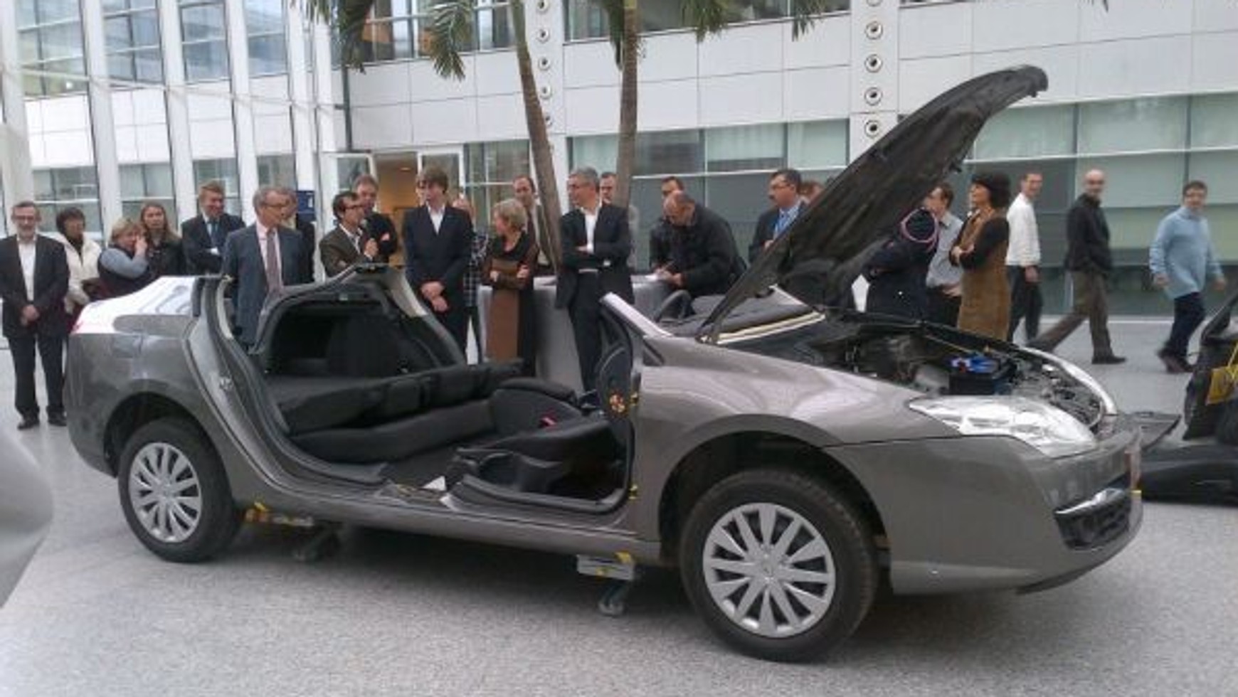 Po siedmiu tygodniach pracy zaprezentowano pierwszy model Laguny w pełnym zestawie. Z samochodu usunięto zbędne części takie jak silnik, bak czy elementy systemu bezpieczeństwa, w tym poduszki powietrzne. Kierownica i kolumna kierownicy działają poprawnie, co umożliwia łatwe manewrowanie pojazdem.