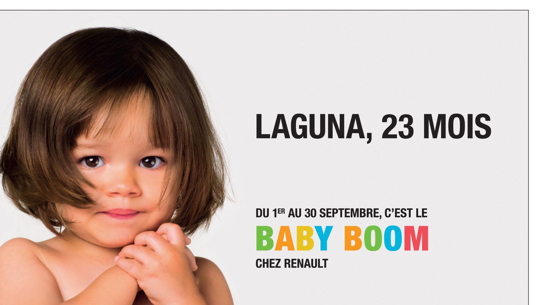 Plakaty ze zdjęciami porównujące wiek dzieci do czasu wprowadzenia nowych modeli Renault na rynek, pojawią się na ponad 180 tysiącach billboardów. Wsparciem kampanii we Francji będą spoty reklamowe emitowane w telewizji i w Internecie. Kampania potrwa do 22 września. W ciągu ostatnich trzech lat Renault odświeżyło ofertę, wprowadzając na rynek aż osiemnaście nowych modeli: Twingo, Clio, Clio Grandtour, Modus, Grand Modus, Megane Hatchback, Megane Grandtour, Megane Coupe, Scenic, Grand Scenic, Koleos, Laguna Hatchback, Laguna Grandtour, Laguna Coupe, Kangoo, Kangoo Express, Kangoo Express Compact oraz Kangoo be bop.