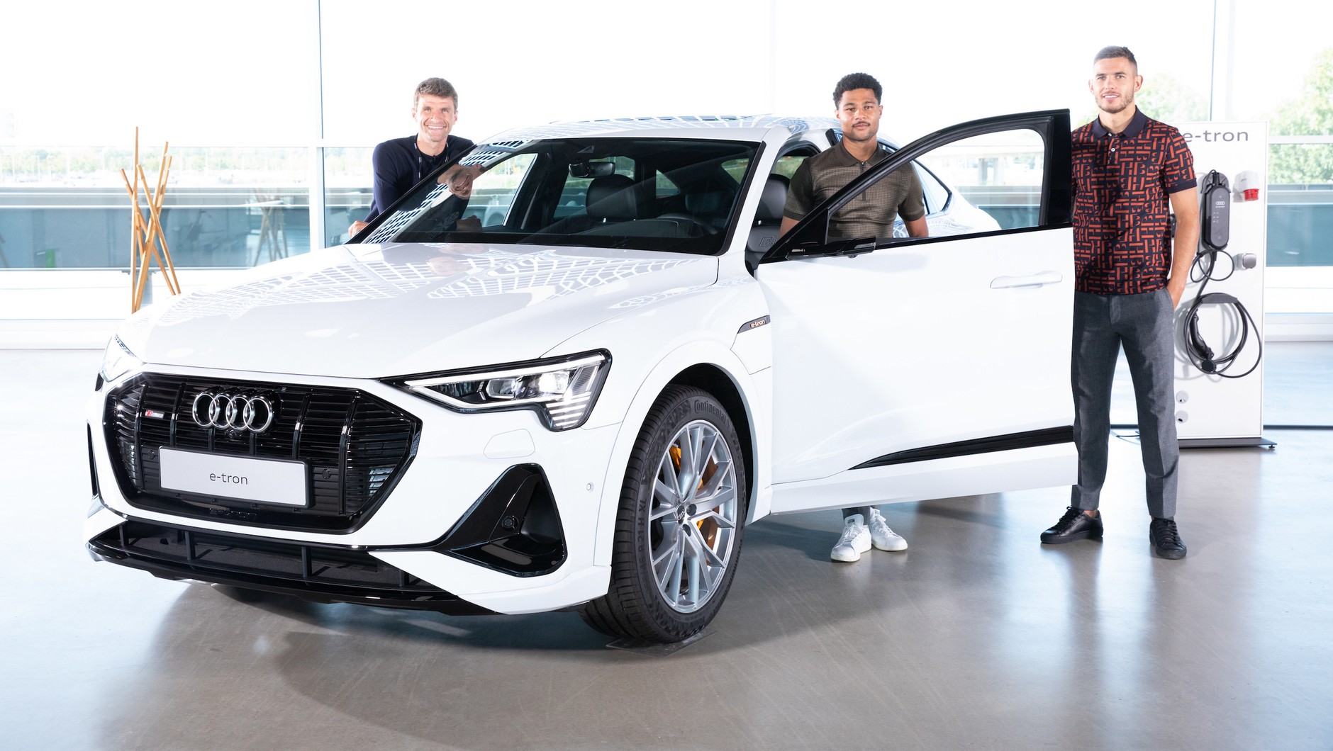 Thomas Müller, Serge Gnabry i Lucas Hernández przy Audi e-tron