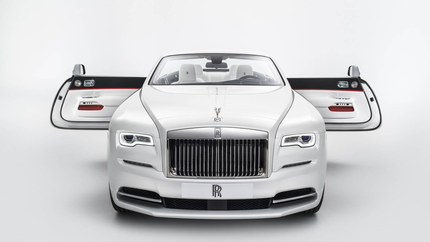 Kolorystykę Andalucian White karoserii modelu Dawn pięknie podkreśla ręcznie malowana linia coachline, która okrąża samochód akcentując jego kształty. Z tyłu linia łączy się w jedną plamę kolorystyczną z miękkim dachem, kiedy ten jest złożony.