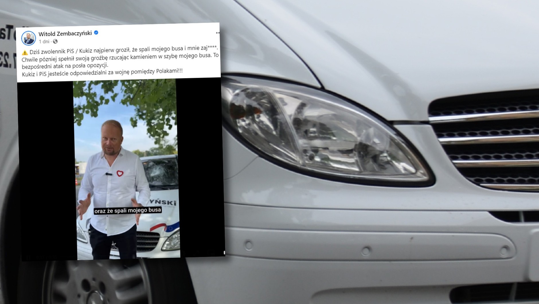 Kilkanaście minut później przeszedł do czynów, uszkodził auto i rozbił przednią szybę w busie. Witold Zembaczyński zamieścił w swoich mediach społecznościowych wideo z zajścia, a także zgłosił sprawę na policję. Polityk twierdzi, że sprawcą jest zwolennik przeciwnej opcji politycznej.