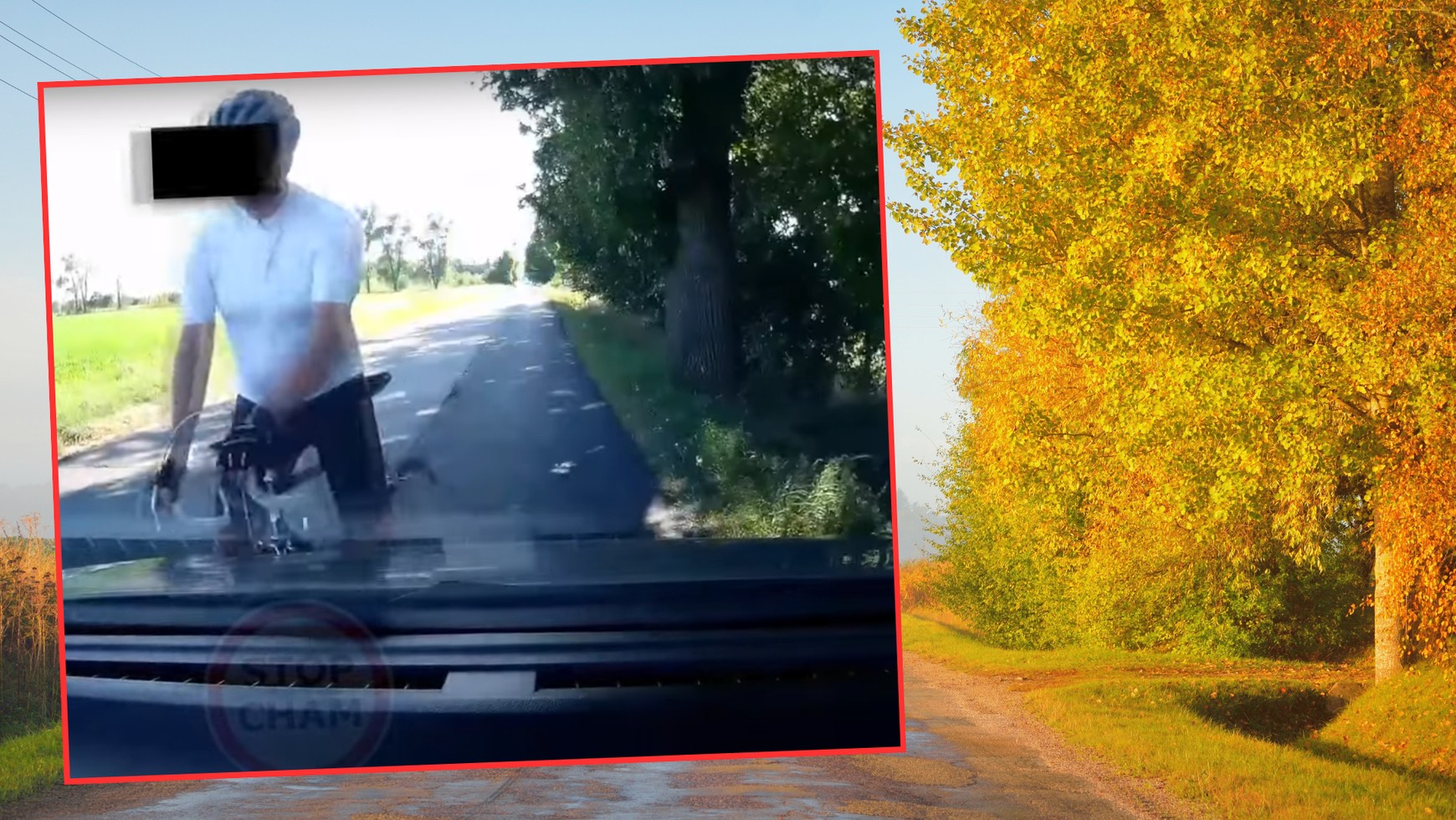 Rowerzysta jadący pod prąd miał pretensje do kierowcy poruszającego się po swoim pasie ruchu (screen: STOPCHAM/YouTube)