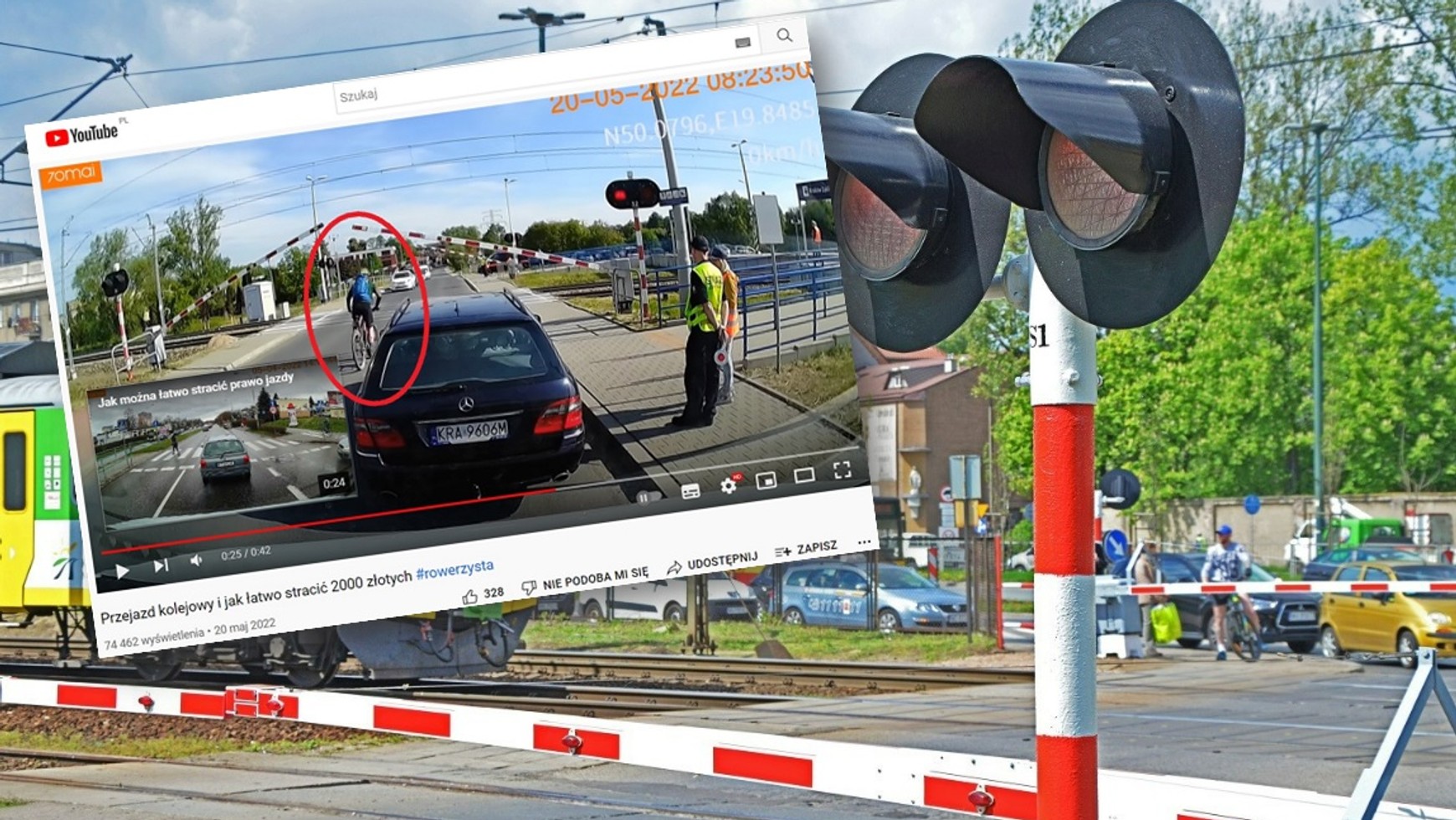 Rowerzysta uwieczniony na nagraniu z pokładowego wideorejestratora przekonał się na własnej skórze, że pośpiech na drodze nie popłaca. A już w szczególności na przejeździe kolejowym! To dlatego, że wprowadzony na początku tego roku nowy taryfikator mandatów karnych przewiduje znacznie wyższe kary za wykroczenia popełnione w tym miejscu. Chciał zaoszczędzić czas i w efekcie stracił "worek" pieniędzy.