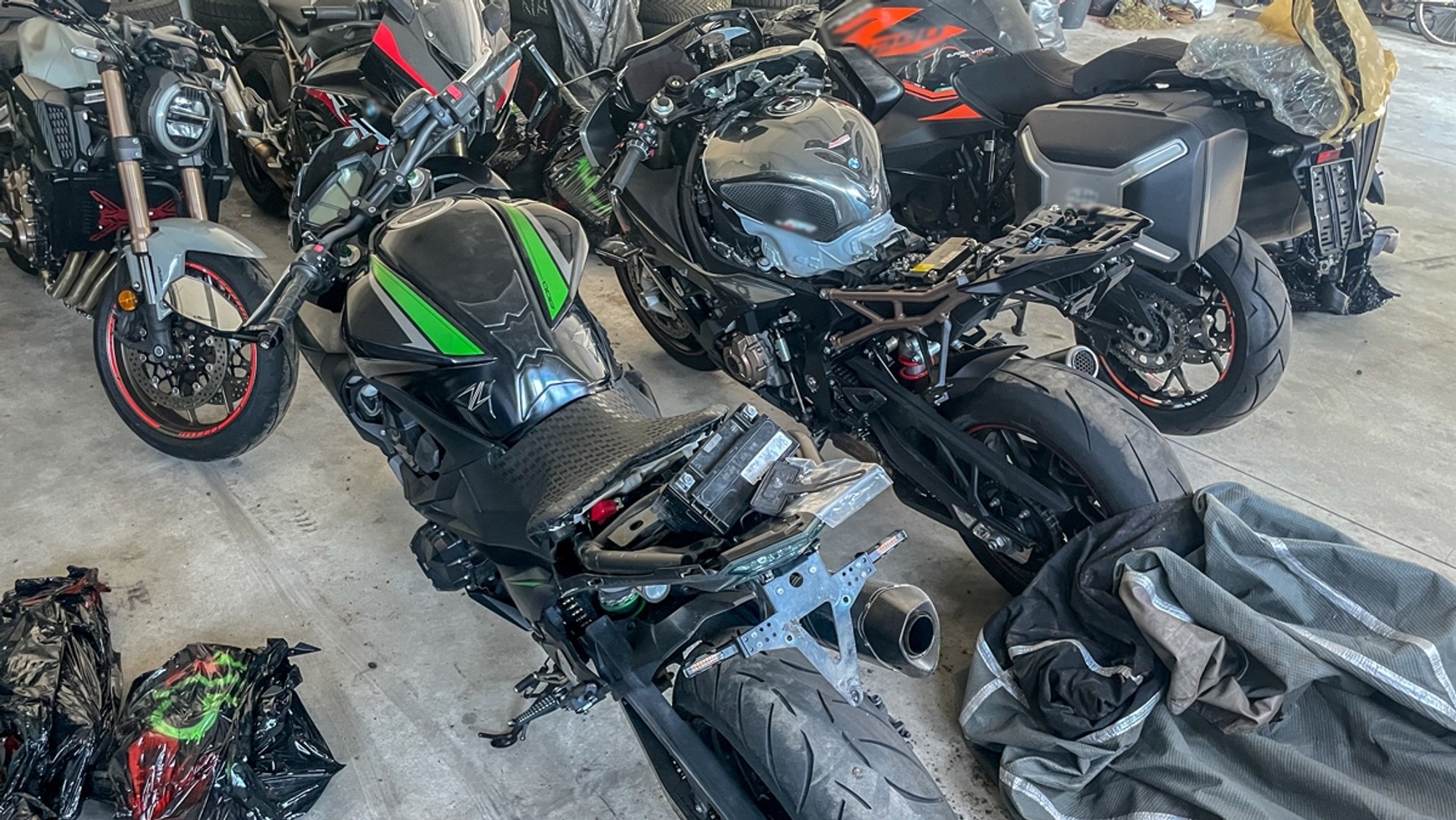 Dalszy ciąg artykułu pod materiałem wideoW trakcie swoich działań mundurowi zaczęli ustalać pochodzenie motocykli takich marek jak BMW, Kawasaki, Ducati i KTM. System informatyczny jedynie potwierdził przypuszczenia i okazało się, że jednoślady zostały skradzione w Niemczech kilka dni wcześniej. To pozwoliło zatrzymać 19- i 22-latka oraz postawić im zarzut paserstwa mienia znacznej wartości, co wiąże się z karą do 10 lat pozbawienia wolności. Taki sam zarzut usłyszała właścicielka posesji. Zabezpieczone motocykle o łącznej wartości ok. 240 tys. zł zostały przewiezione na policyjny parking i trafią z powrotem do swoich właścicieli.
