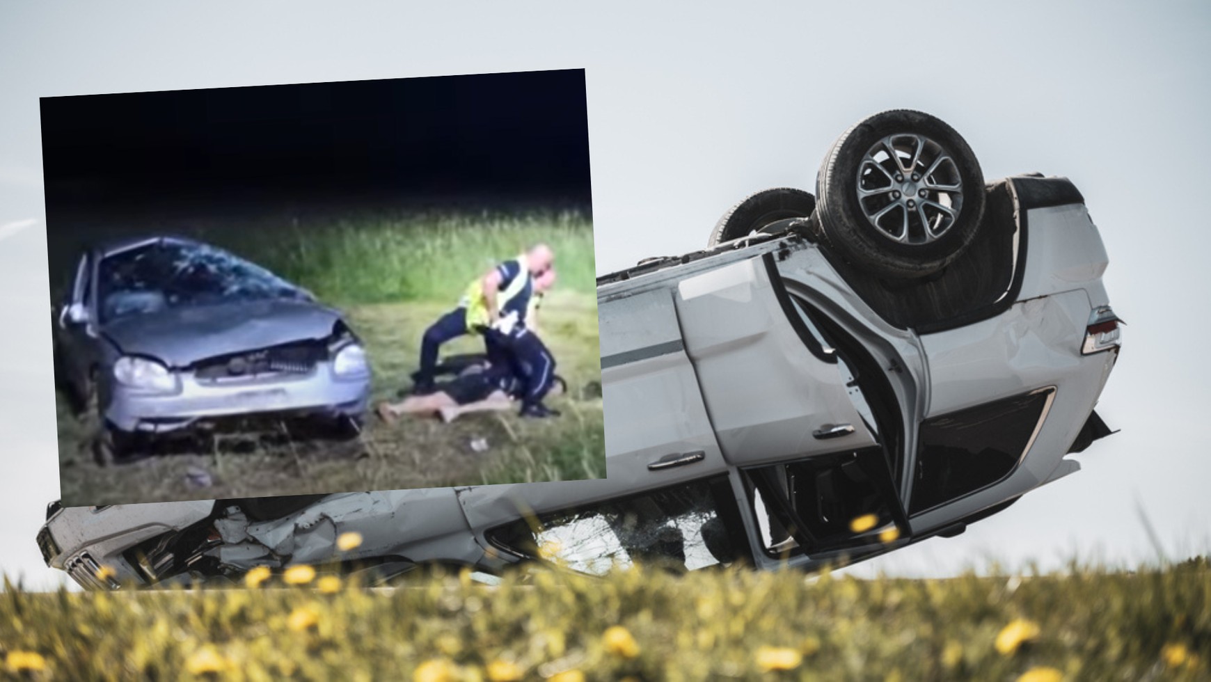Służby ratunkowe po przybyciu na miejsce wypadku zastały przy rozbitym samochodzie agresywnego mężczyznę, który uderzał w karoserię i szyby butelką. "Tygodnik Podhalański" udostępnił nagranie z interwencji: