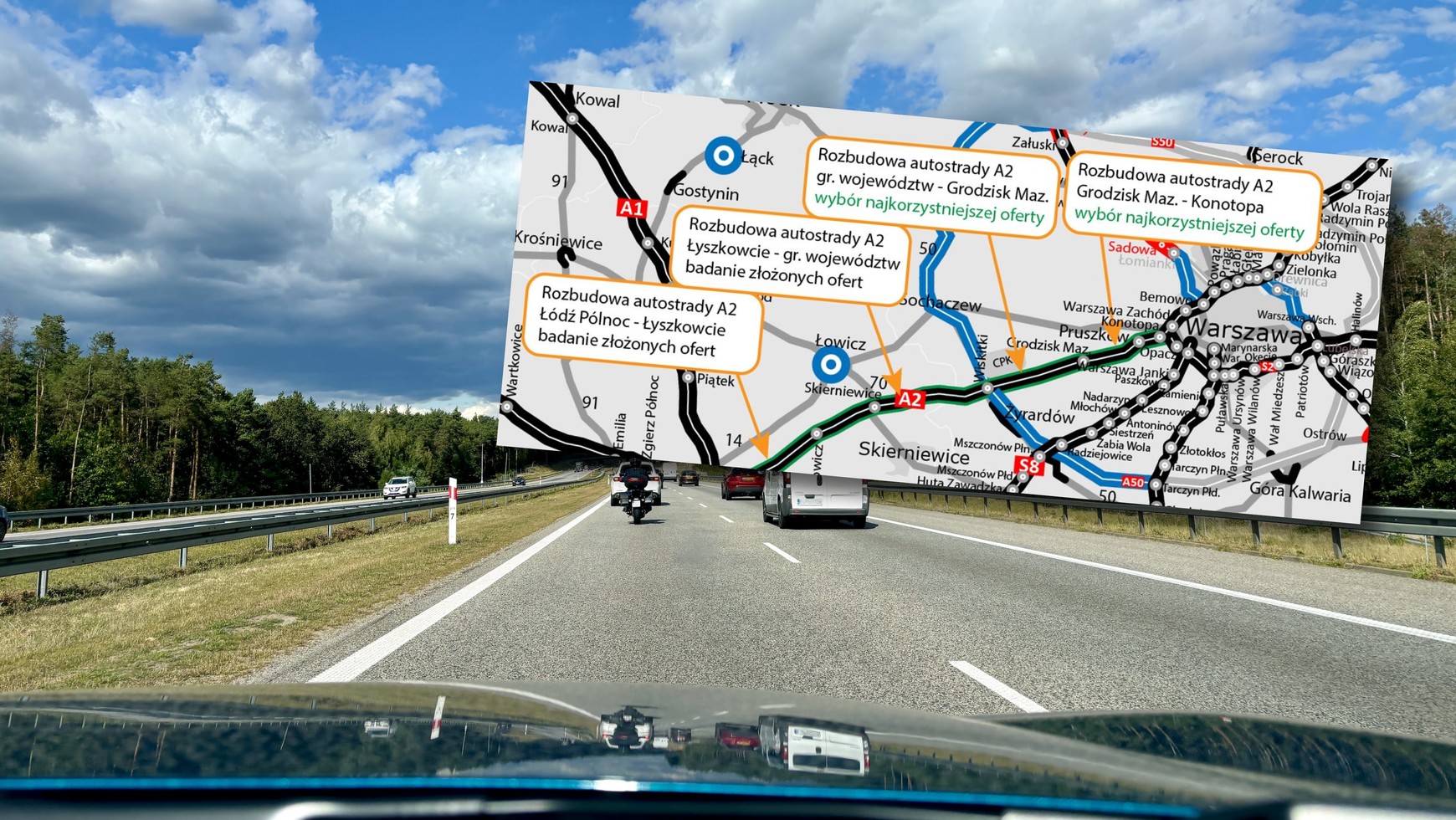 Po szczegółowej analizie dokumentacji przetargowej, GDDKiA wybrała firmę Strabag do wykonania dwóch fragmentów autostrady o łącznej długości blisko 43 km. Rozbudowa odcinka od granicy województw do węzła Grodzisk Mazowiecki (25,4 km) została wyceniona na 344,7 mln zł, natomiast dalszy fragment do węzła Konotopa (17,2 km) – na 256,9 mln zł.